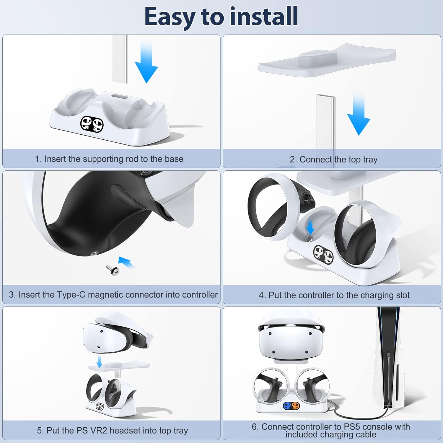 Lleva el orden de tu zona gamer al siguiente nivel con esta espectacular estacion de carga magnetica diseñada exclusivamente para los controles de tu playstation vr 2 Es el accesorio definitivo en Chile para cuidar tus equipos de realidad virtual y olvidarte de los cables enredados