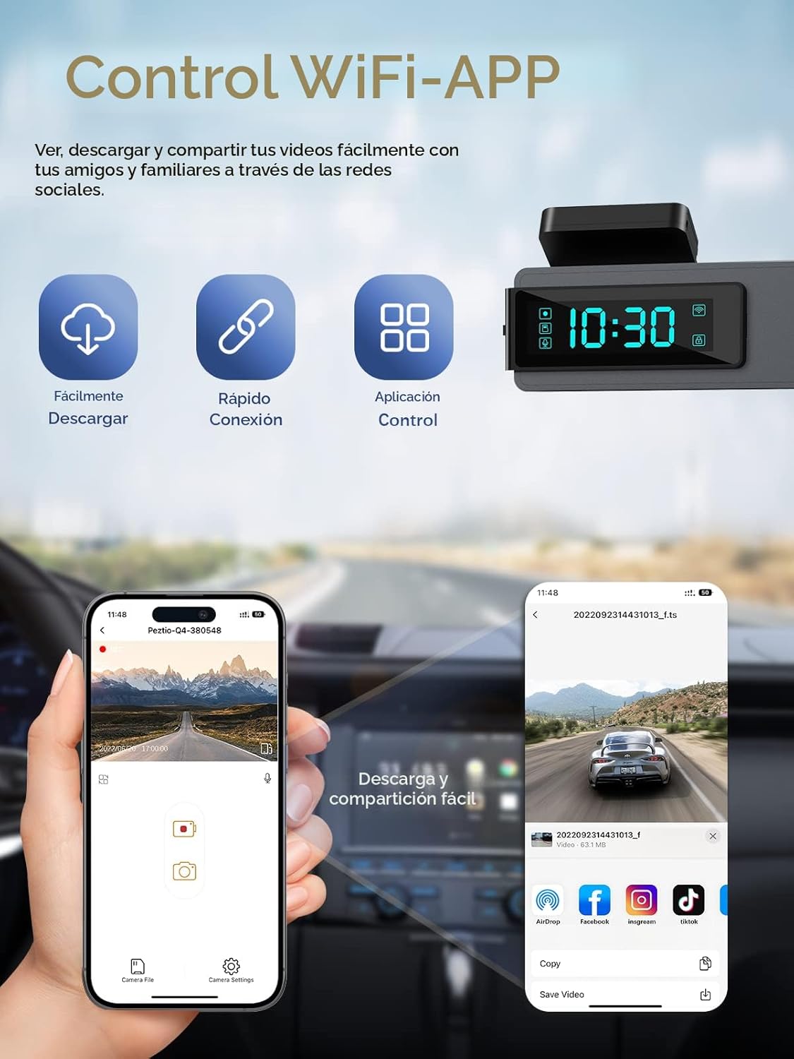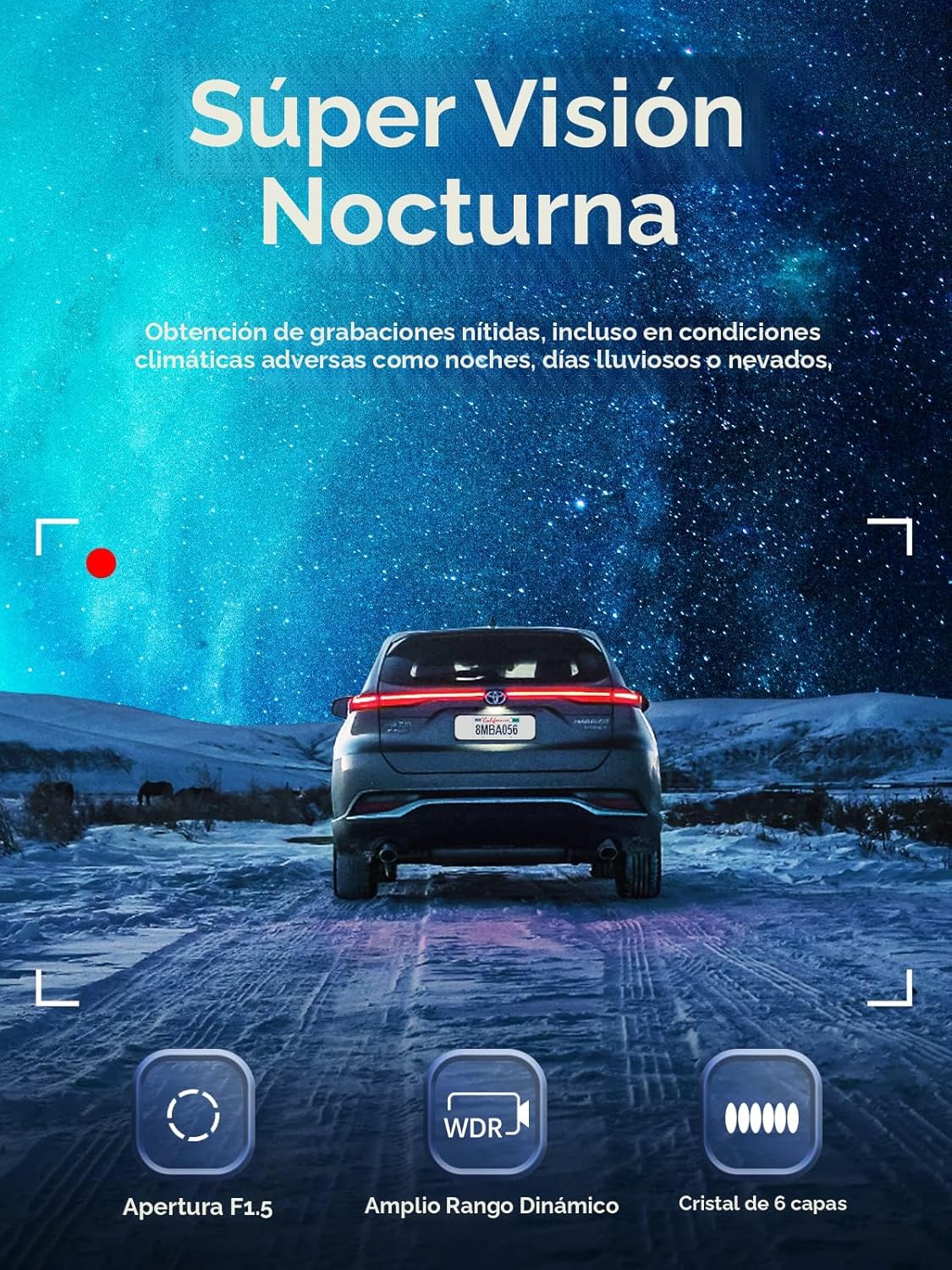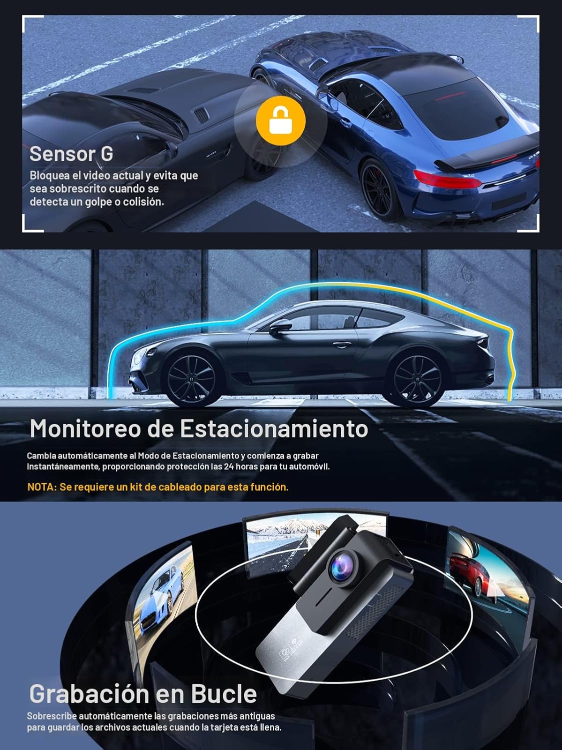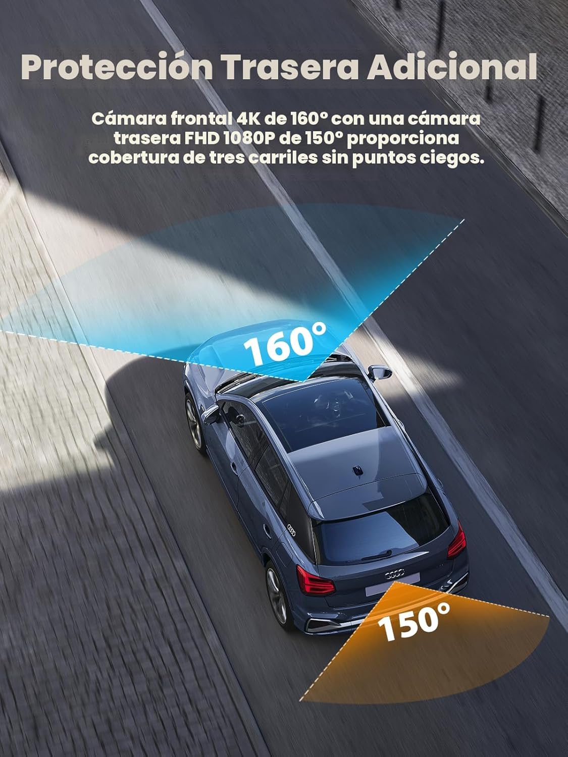 Protege tu vehiculo en todo momento con esta increible camara de auto doble Graba tus viajes con una calidad ultra HD 4K en la parte delantera y 1080P en la trasera para no perder ningun detalle de las patentes o señales de transito Incluye una tarjeta de memoria de 64GB gratis para que comiences a grabar de inmediato Su diseño compacto se oculta perfecto tras el espejo retrovisor para no tapar tu vista y gracias a su conexion WiFi puedes ver y descargar los videos directo a tu celular con su aplicacion Ademas cuenta con una excelente vision nocturna para grabar super nitido en la oscuridad y un modo de vigilancia de estacionamiento para cuidar tu auto las 24 horas del dia