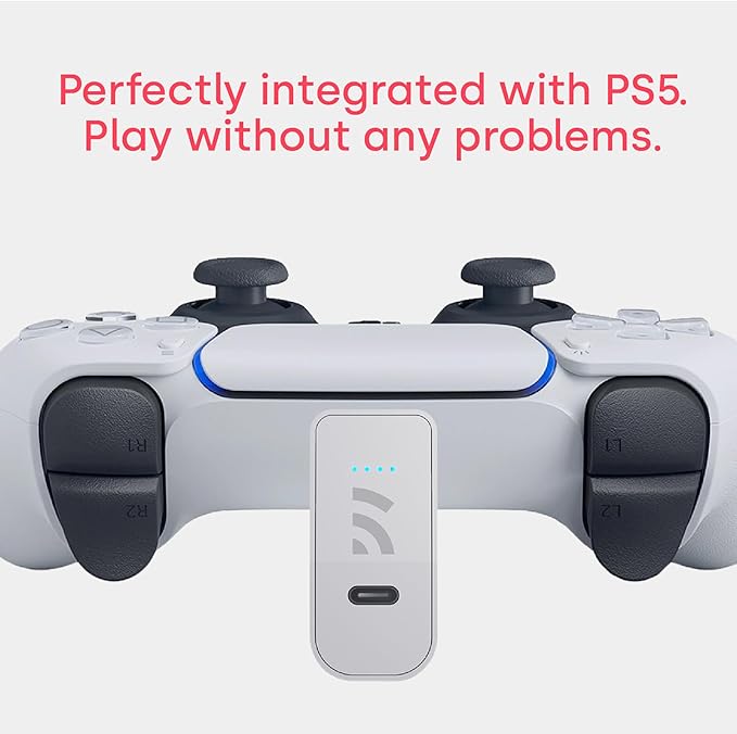 Este tremendo accesorio se conecta directo a tu control dualsense oficial y es tan liviano y ergonómico que ni siquiera vas a notar que lo tienes puesto Puedes seguir jugando cómodamente desde tu sillon mientras la bateria se carga y trae luces led integradas para que siempre sepas cuanta energía te va quedando