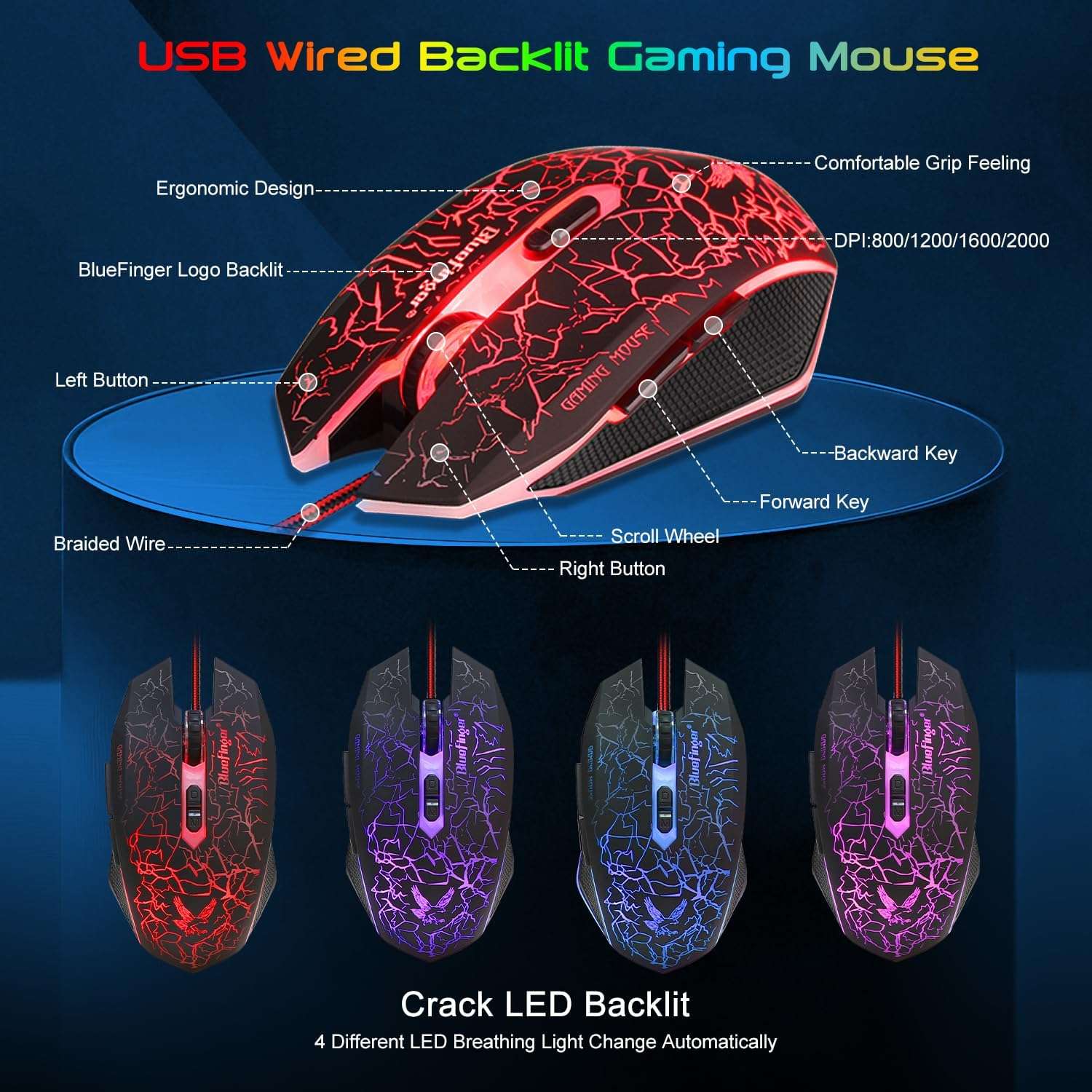 Este combo gamer de la marca BlueFinger es la opcion ideal y mas buscada en Chile para quienes buscan renovar su estacion de juego Incluye un teclado retroiluminado un raton de precision y una practica alfombrilla garantizando compatibilidad total con pc consolas xbox playstation y equipos mac mediante conexion usb sin requerir controladores adicionales