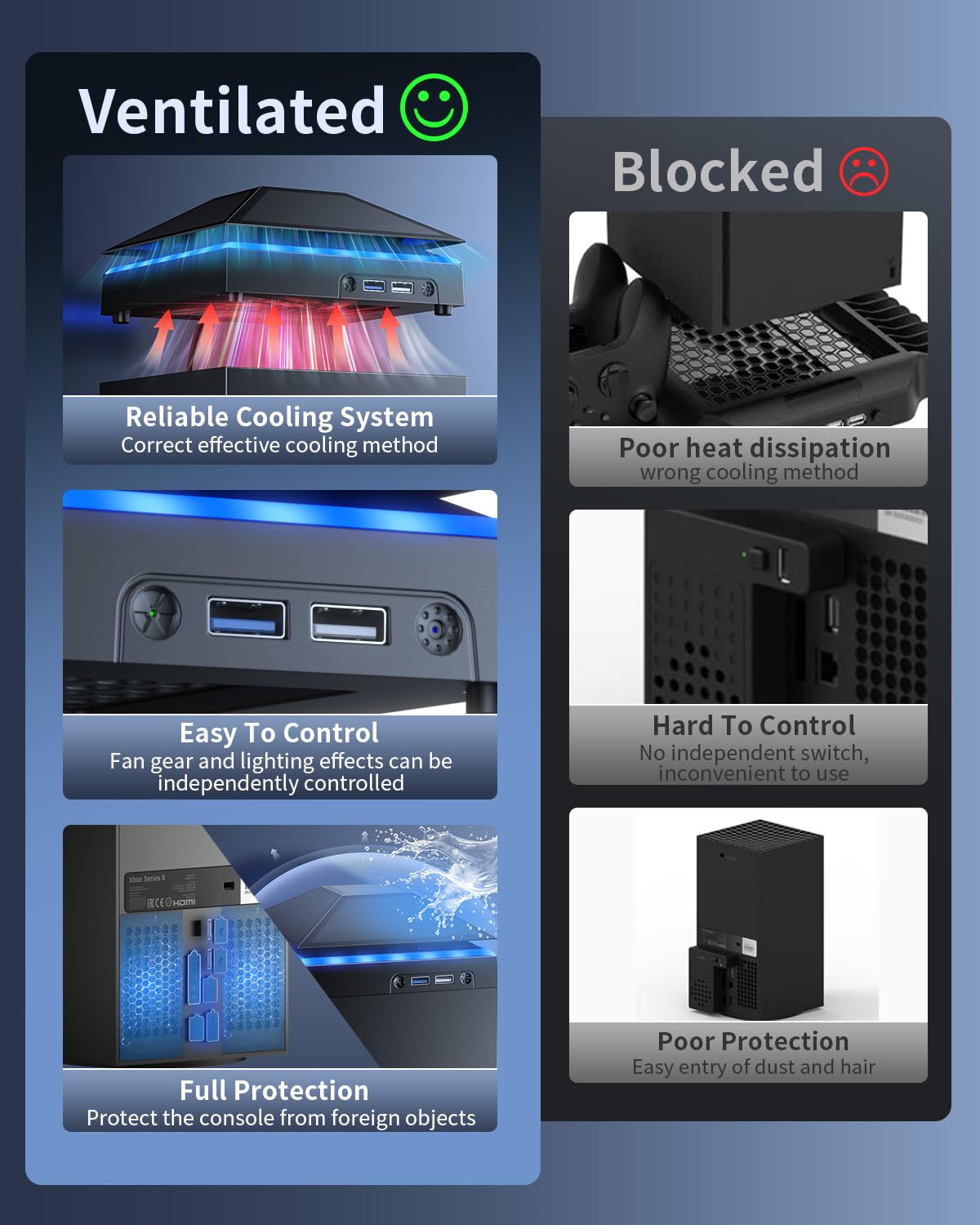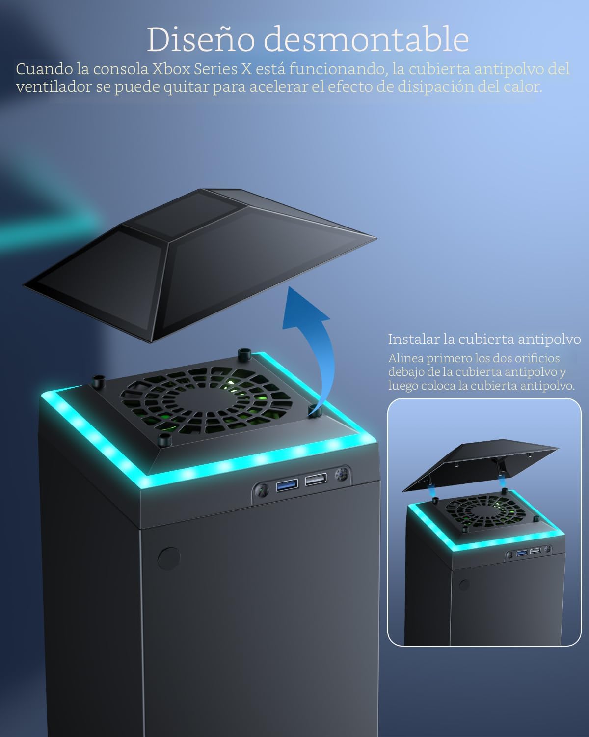 Mejora tu Xbox Series X y olvídate del sobrecalentamiento con este completo sistema de refrigeración. Este cooler superior es la solución perfecta para mantener tu consola a la temperatura ideal y libre de polvo.