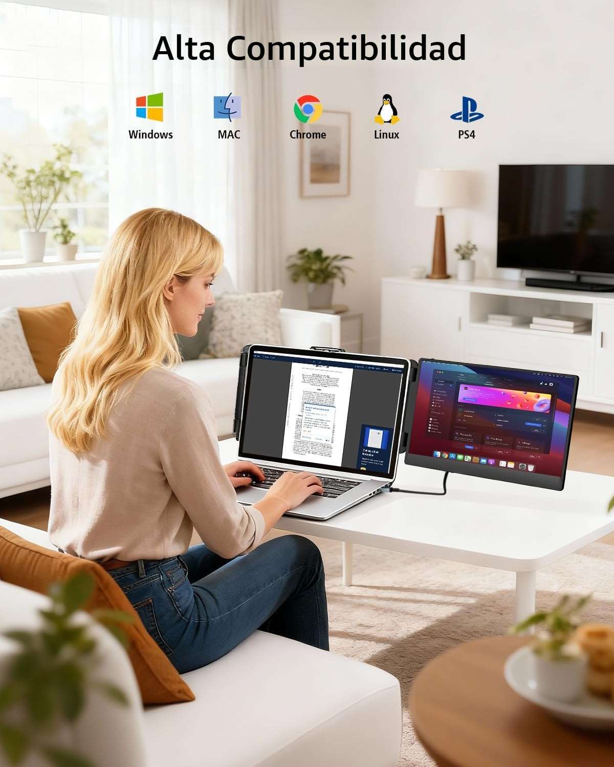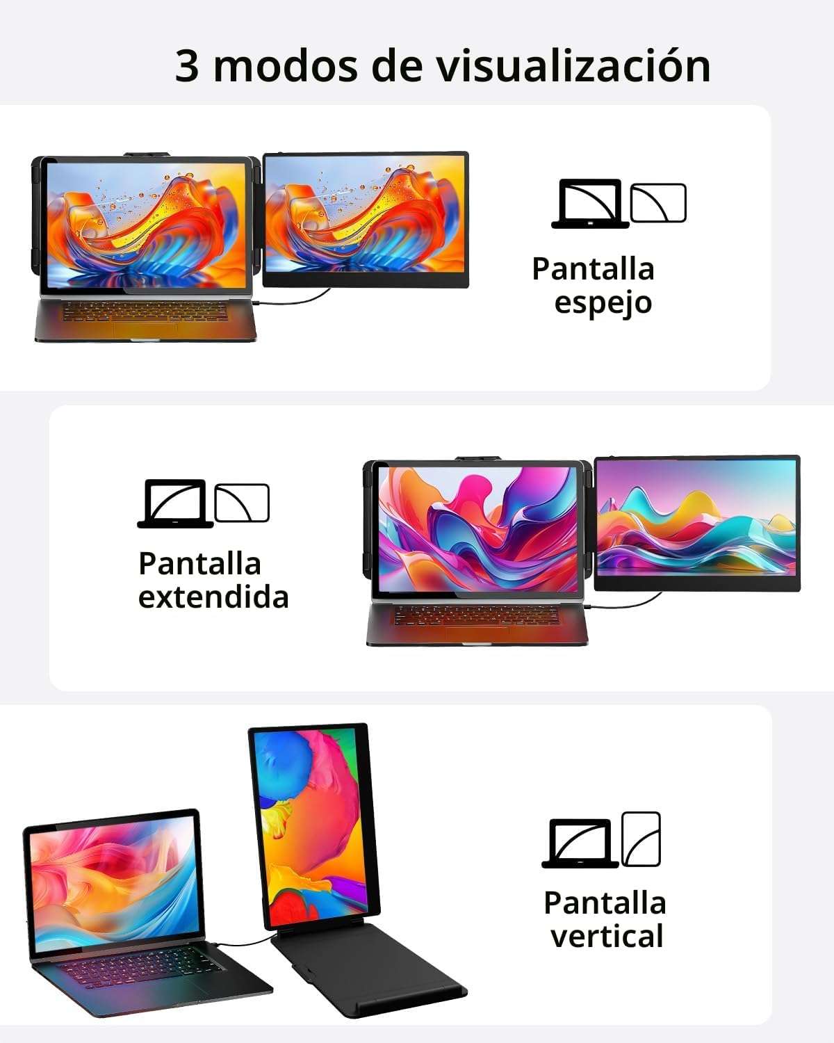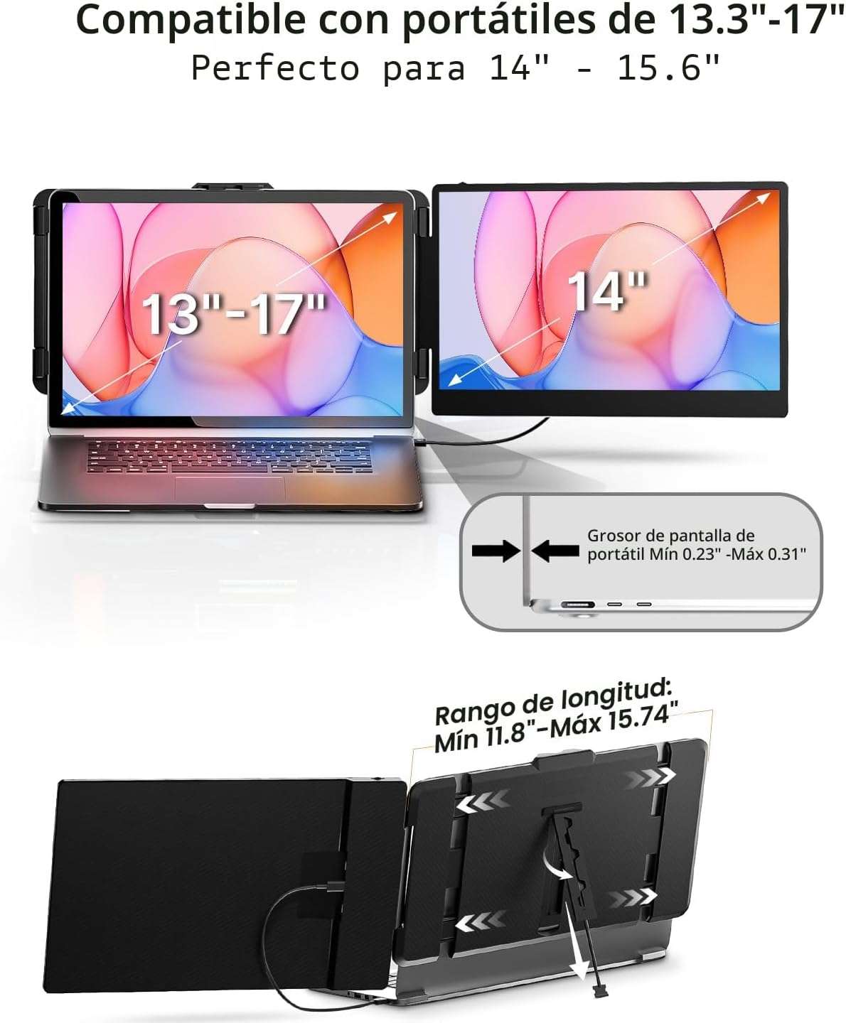 Este extensor de monitor portatil es la opcion mas completa y buscada en Chile para quienes necesitan aumentar su productividad al maximo Su pantalla mide exactamente 35 5 centimetros brindando un espacio visual adicional que le permite abrir multiples ventanas a la vez eliminando la necesidad de cambiar de pestañas constantemente y aumentando su eficiencia de trabajo en un 200 por ciento ideal para profesionales trabajadores remotos y jugadores