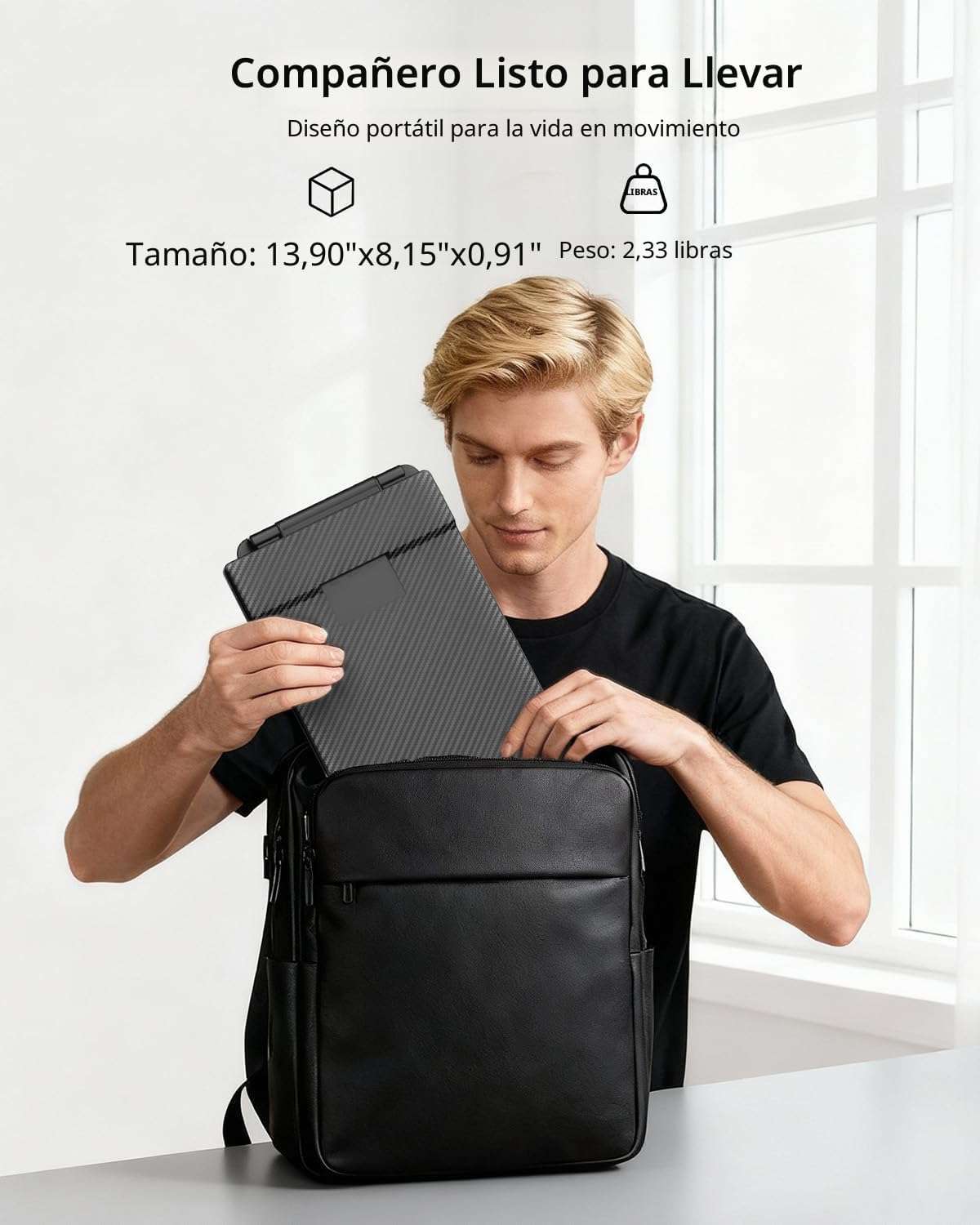 Este monitor de viaje es totalmente compatible con equipos windows mac sistemas linux consolas playstation xbox y nintendo switch Su diseño se ajusta a notebooks que midan entre 34 y 43 centimetros de tamaño Pesa un kilo y tiene un grosor de apenas 2 centimetros al estar plegado siendo sumamente facil de guardar y transportar en mochilas ideal para profesionales en constante movimiento