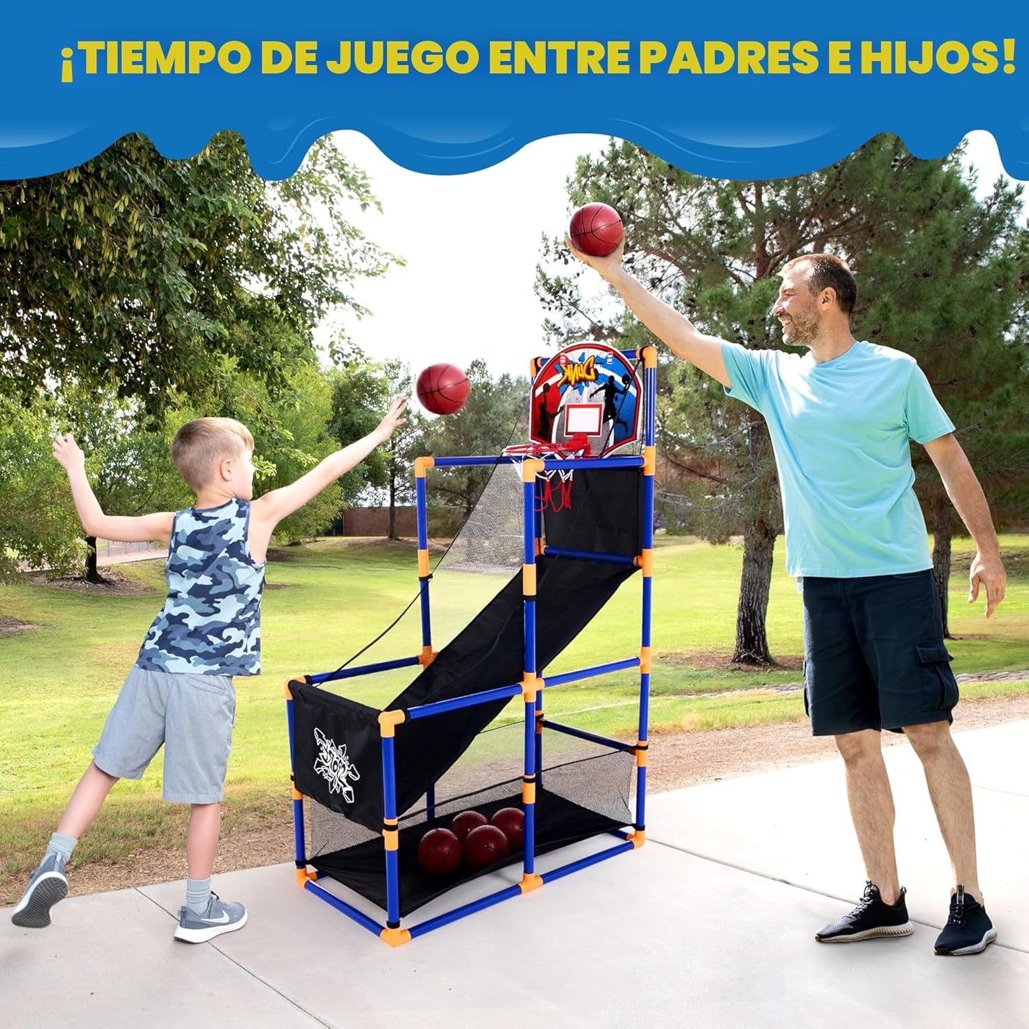 Crece con Ellos: Puedes modificar la altura del aro para adaptarlo a niños pequeños (3 años) o subirlo para un desafio mayor para niños de hasta 12 años.