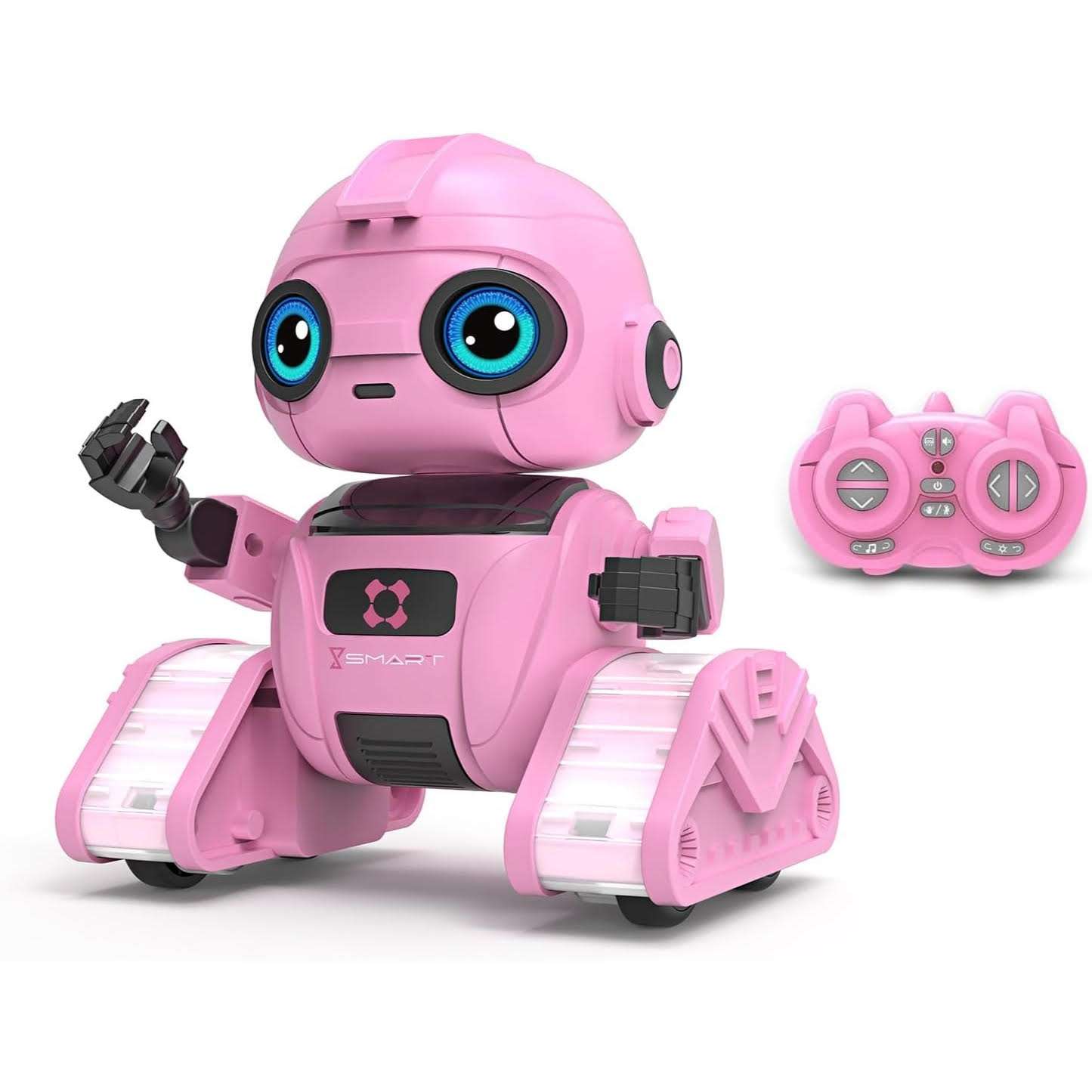 Este divertido robot de juguete interactivo en color rosa es la opcion mas buscada en Chile para sorprender a las niñas y fomentar su desarrollo cognitivo Sus medidas exactas convertidas son 12 centimetros de profundidad 9 centimetros de ancho y 14 centimetros de alto ofreciendo un diseño super compacto y amigable Su base cuenta con robustas orugas de tanque iluminadas que le permiten moverse de forma muy agil en cualquier direccion logrando giros completos de 360 grados y bailes muy fluidos