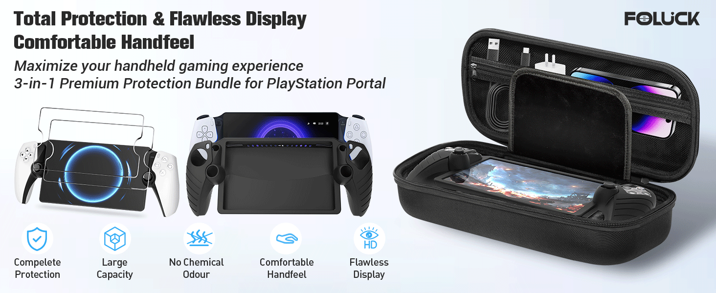 No arriesgues tu nueva consola portatil. Este Set de Accesorios 3 en 1 te entrega todo lo que necesitas para cuidar tu PlayStation Portal desde el primer dia. Hemos combinado un estuche de viaje ultrarresistente, una carcasa ergonomica y proteccion de pantalla de alta claridad para que solo te preocupes de disfrutar tus juegos.