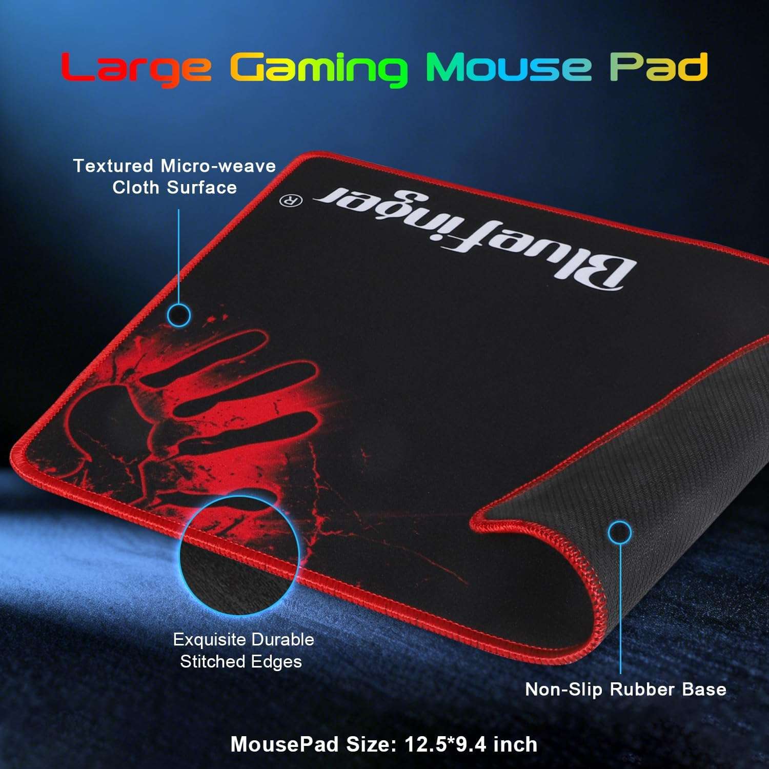 Para complementar sus movimientos se incluye una alfombrilla para raton que mide 30 centimetros de largo por 25 centimetros de ancho asegurando un gran espacio de uso Esta fabricada con una superficie de tela suave y exquisita que brinda soporte a la muñeca y cuenta con una base de goma inferior garantizando que la alfombrilla no se deslice bajo ninguna circunstancia