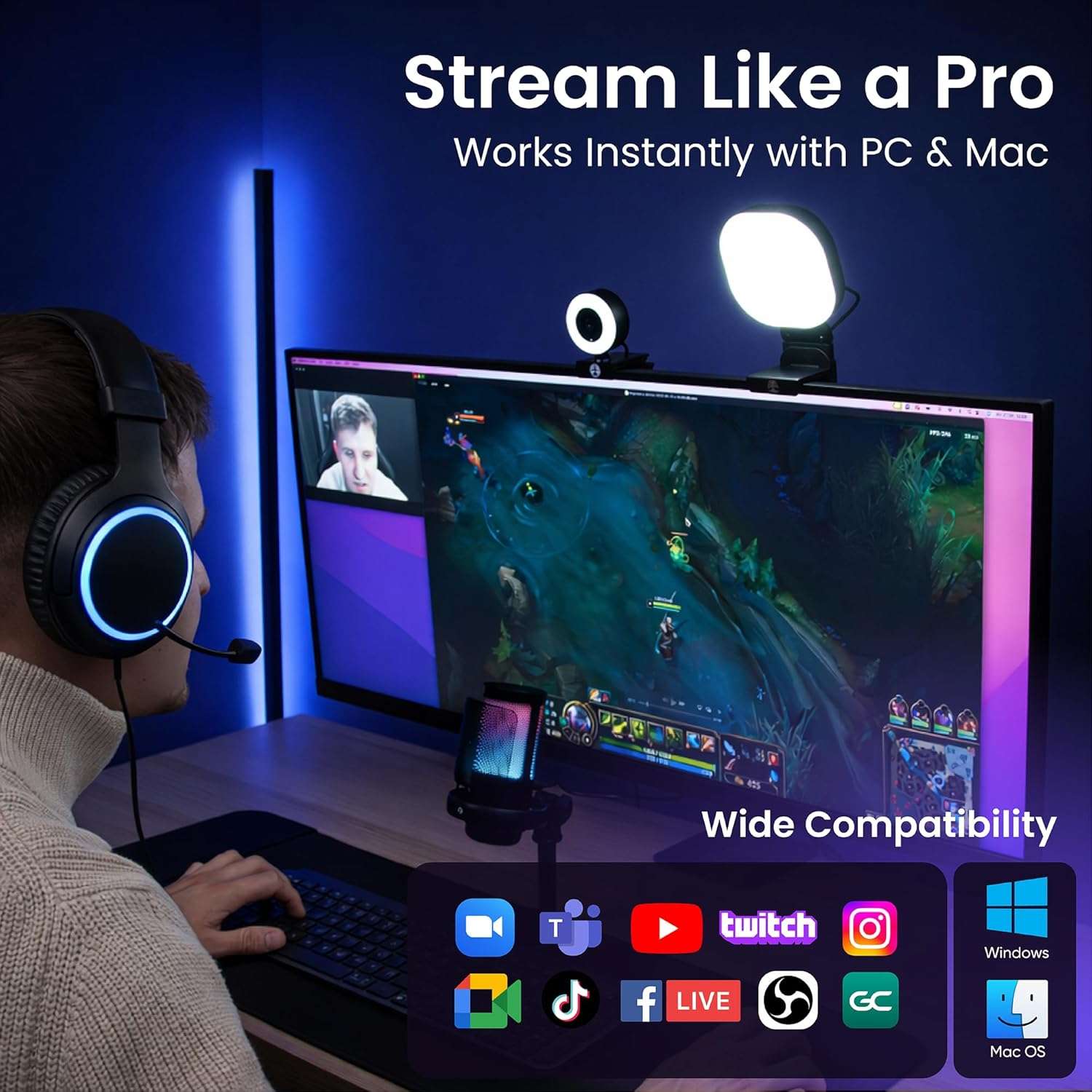Para lograr una imagen perfecta en todo momento este combo incorpora una luz led usb ajustable que incluye un soporte flexible y modos de iluminacion calida fria y mixta Esto le permite lograr una iluminacion favorecedora y de calidad de estudio con total facilidad adaptandose a cualquier entorno de grabacion