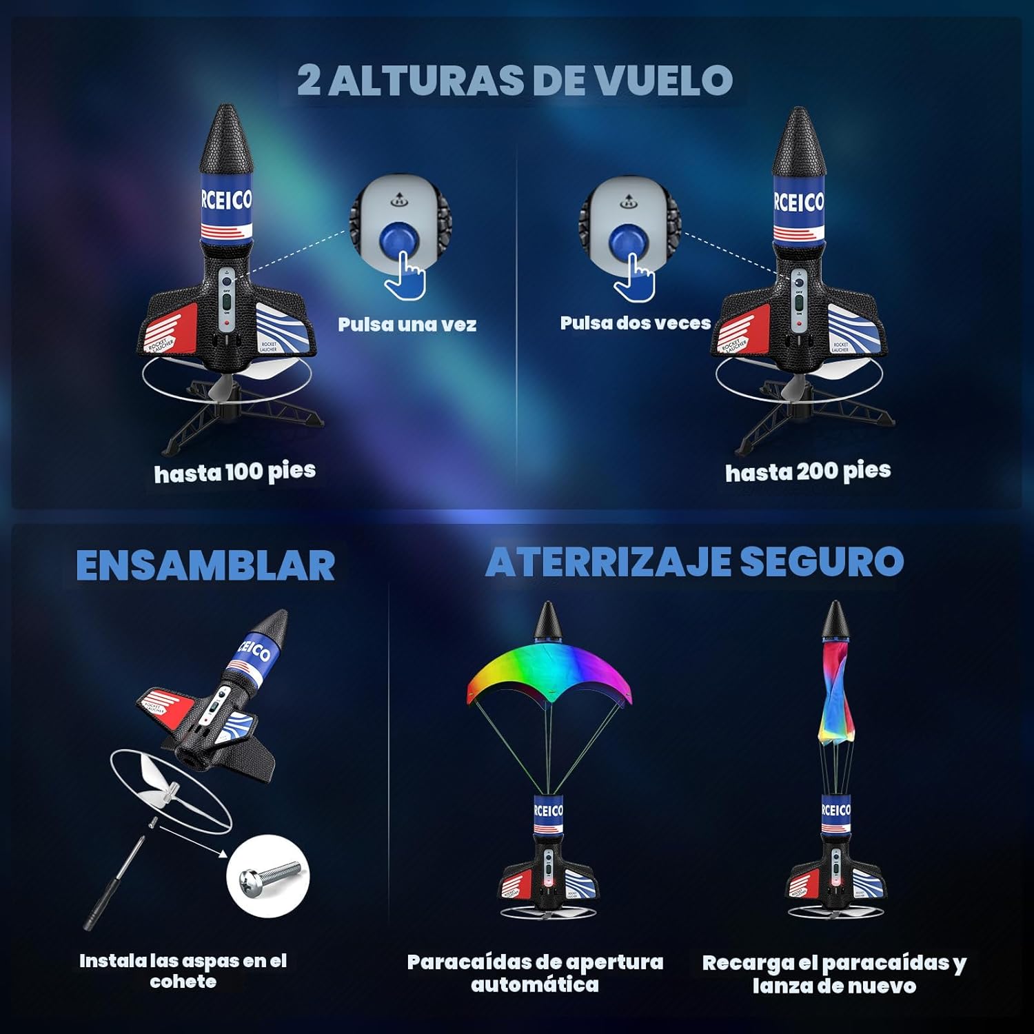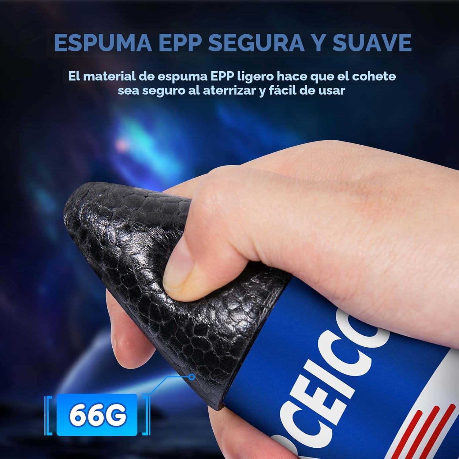 Lleva la diversion al aire libre a alturas extremas. Este Lanzacohetes Motorizado Rceico no necesita que saltes ni corras; su potente motor electrico lo impulsa verticalmente hasta alcanzar los 60 metros de altura. Fabricado con espuma EEP ultraligera y resistente, es la combinacion perfecta entre ingenieria y diversion segura.