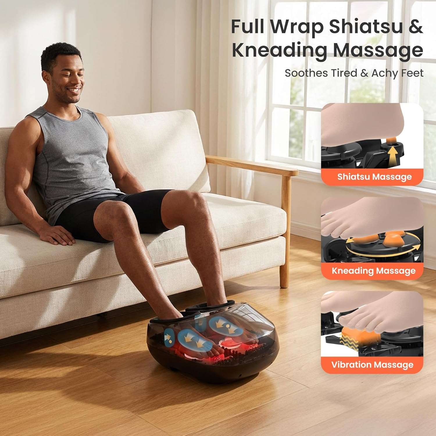 Este avanzado masajeador de pies electrico es la opcion mas completa y buscada en Chile para quienes necesitan alivio profesional y relajacion profunda en el hogar Su diseño ergonomico y espacioso se adapta perfectamente a diferentes usuarios soportando incluso hasta la talla 46 de calzado chileno ofreciendo un cuidado integral que combina tecnicas de amasado shiatsu vibracion y compresion de aire para aliviar la tension diaria
