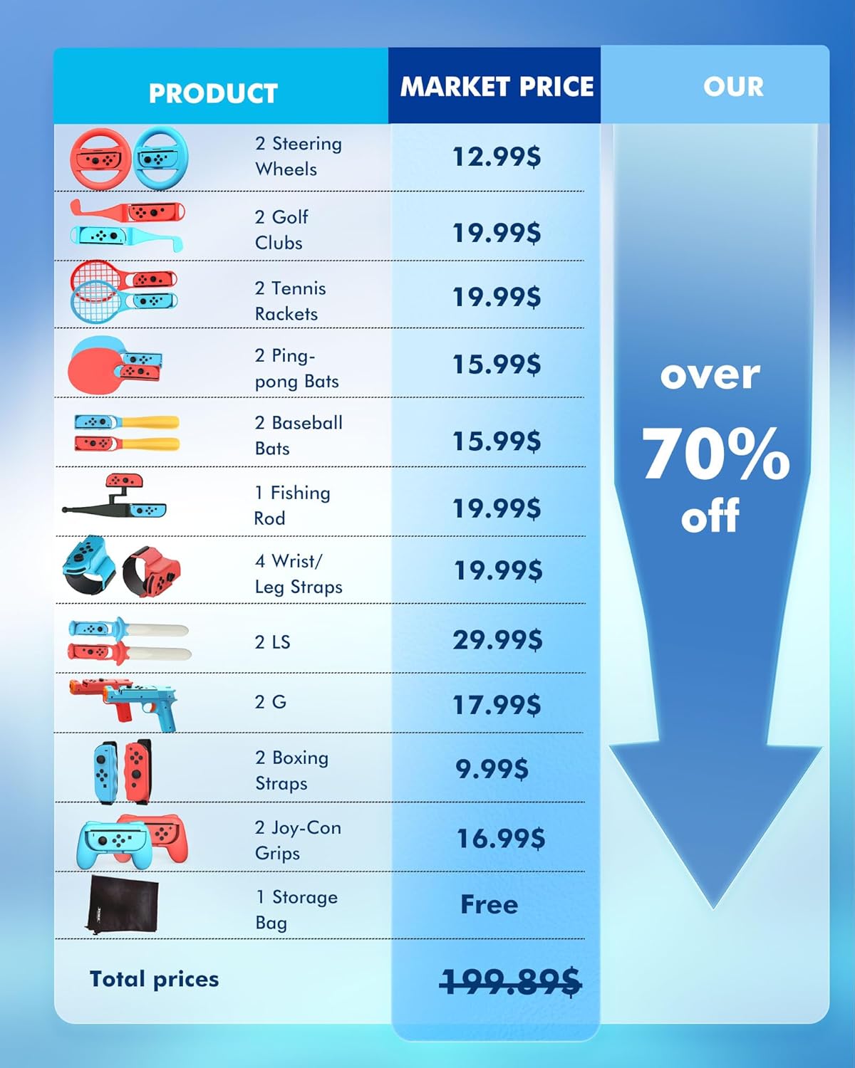 Lleva la diversion al maximo nivel con este mega kit de accesorios deportivos 24 en 1 para tu Nintendo Switch Es el paquete definitivo para armar las mejores competencias en familia y no aburrirse nunca mas en la casa