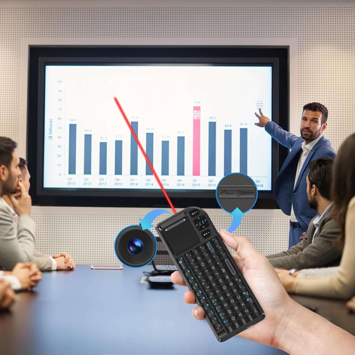 Pensando en la presentacion profesional y la funcionalidad este dispositivo cuenta con un puntero laser integrado perfecto para reuniones y conferencias Ademas incluye botones de clic izquierdo y derecho que facilitan las tareas de copiar pegar y seleccionar textos rapidamente Para su uso nocturno ofrece un practico modo de retroiluminacion con siete colores diferentes permitiendo escribir sin problemas en entornos oscuros