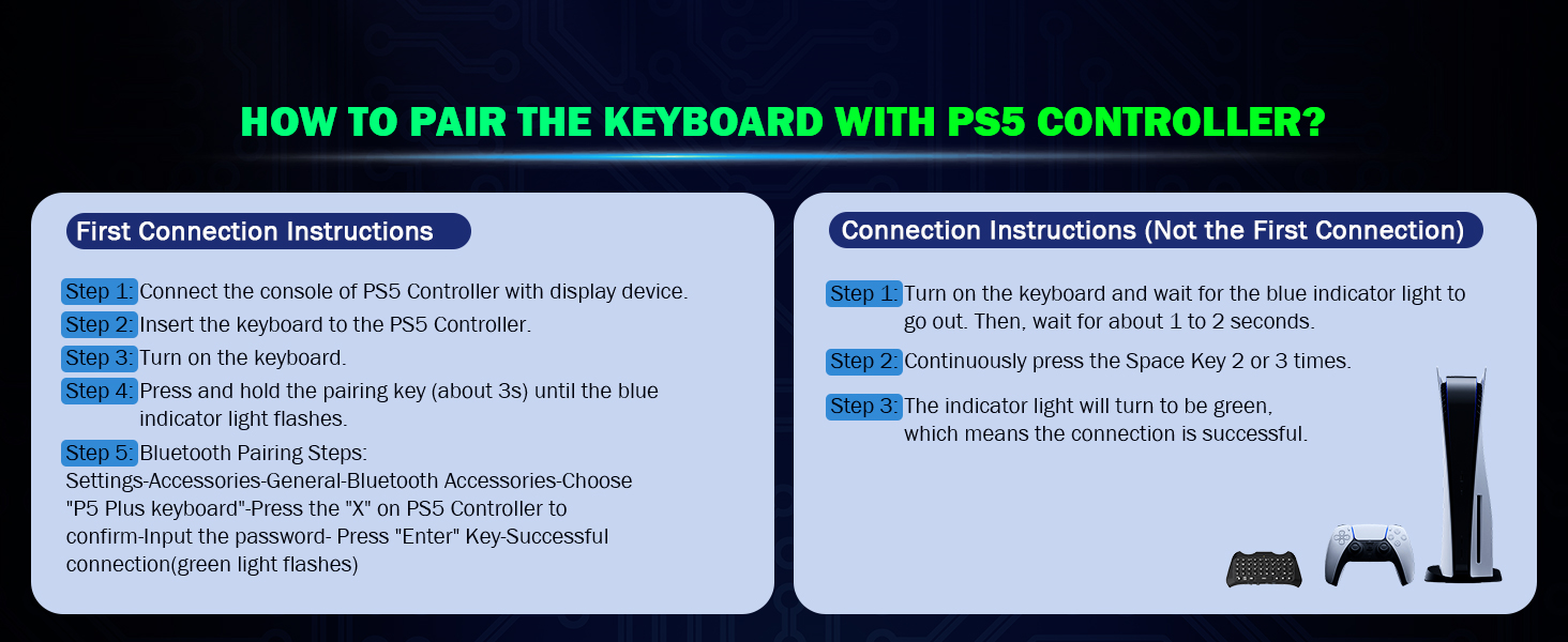 Emparejamiento Facil: Solo enciende tu control PS5, prende el teclado y manten presionado el boton de emparejamiento por 3 segundos hasta que parpadee la luz azul. Lo vinculas en el menu de la consola y listo.