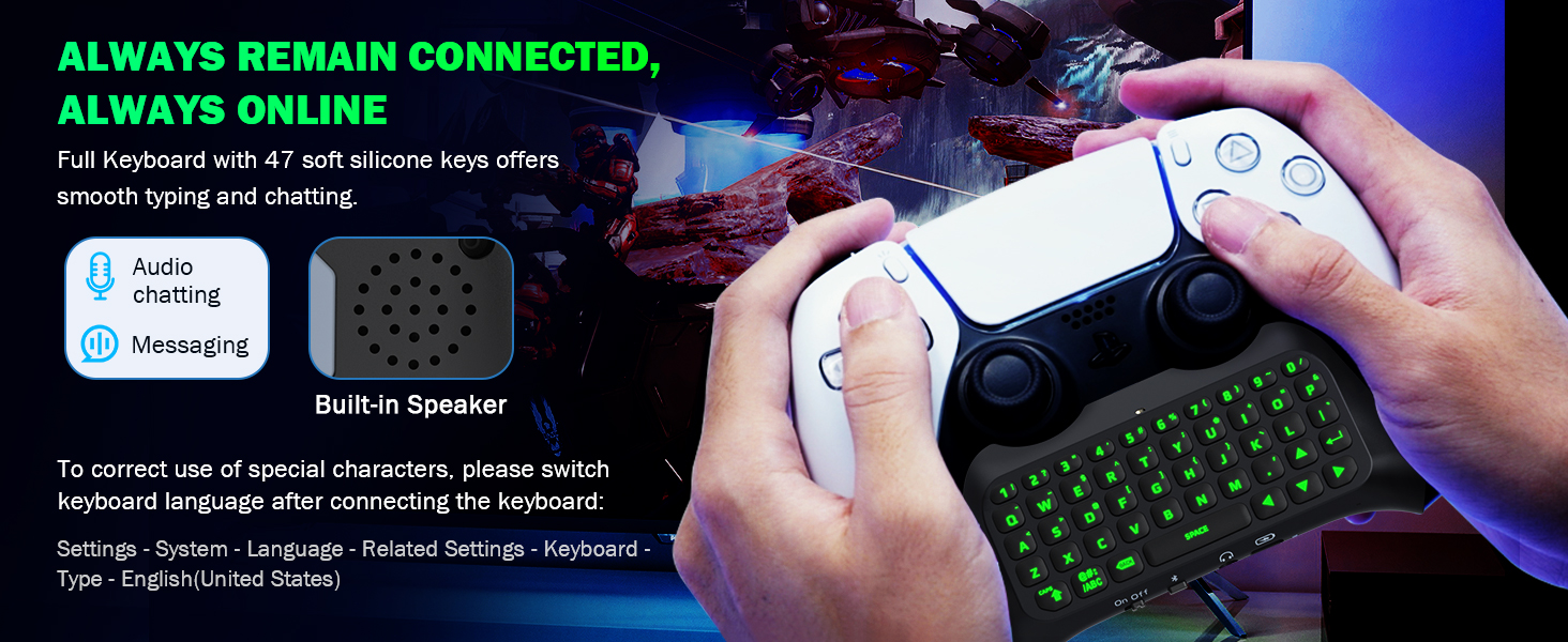 Olvidate de la lentitud al escribir en la pantalla de tu televisor. Este Mini Teclado Inalambrico se acopla directamente a tu joystick de PlayStation 5, convirtiendo tu mando en una herramienta de comunicacion ultra rapida. Combina un diseño ligero con botones de silicona suaves al tacto para que no sientas fatiga en tus manos tras horas de juego.
