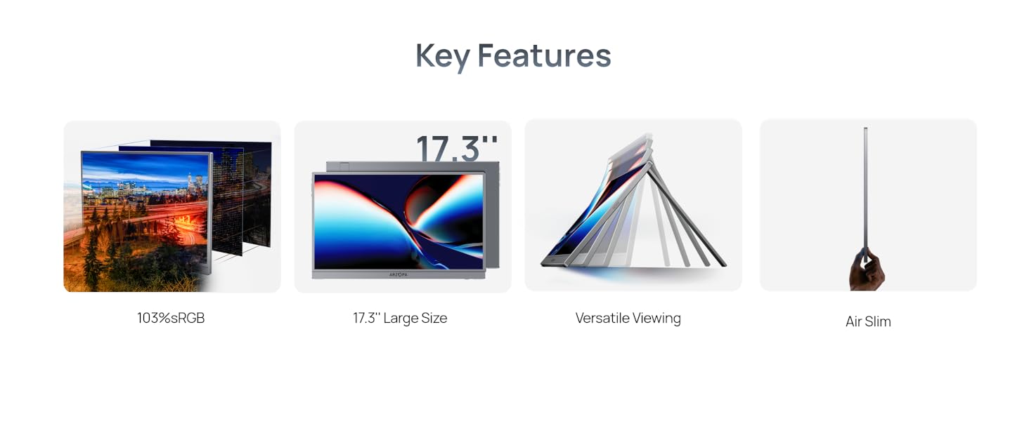 Monitor Portatil de 17 Pulgadas Resolucion 1080p IPS Pantalla Externa