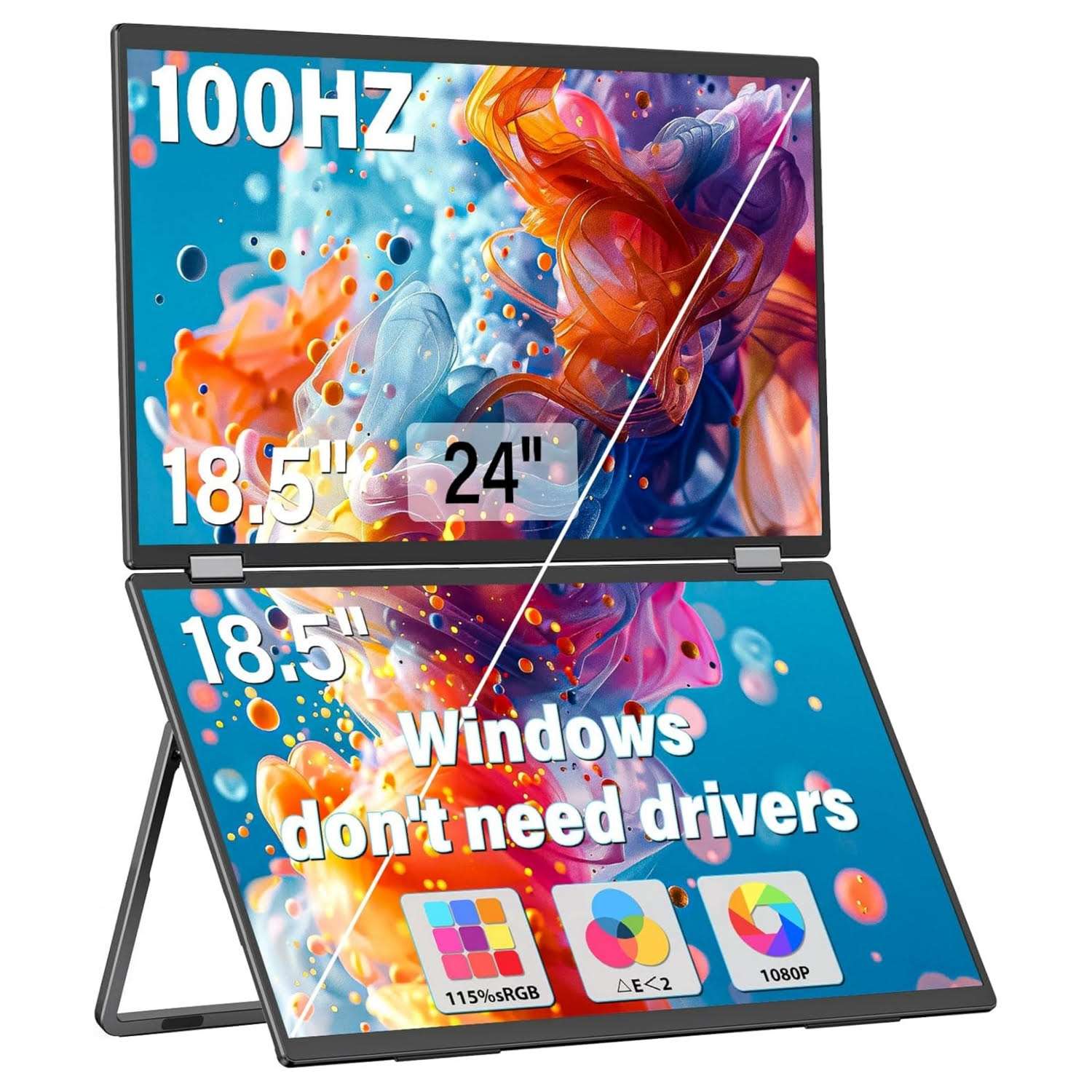 Este monitor portatil doble de la marca InnoView es la opcion mas avanzada en Chile para quienes buscan aumentar su productividad de manera profesional Su diseño apilado y plegable incluye dos pantallas de 47 centimetros que equivalen a las 18 5 pulgadas solicitadas ofreciendo una resolucion FHD de 1080P y un panel IPS de alta calidad