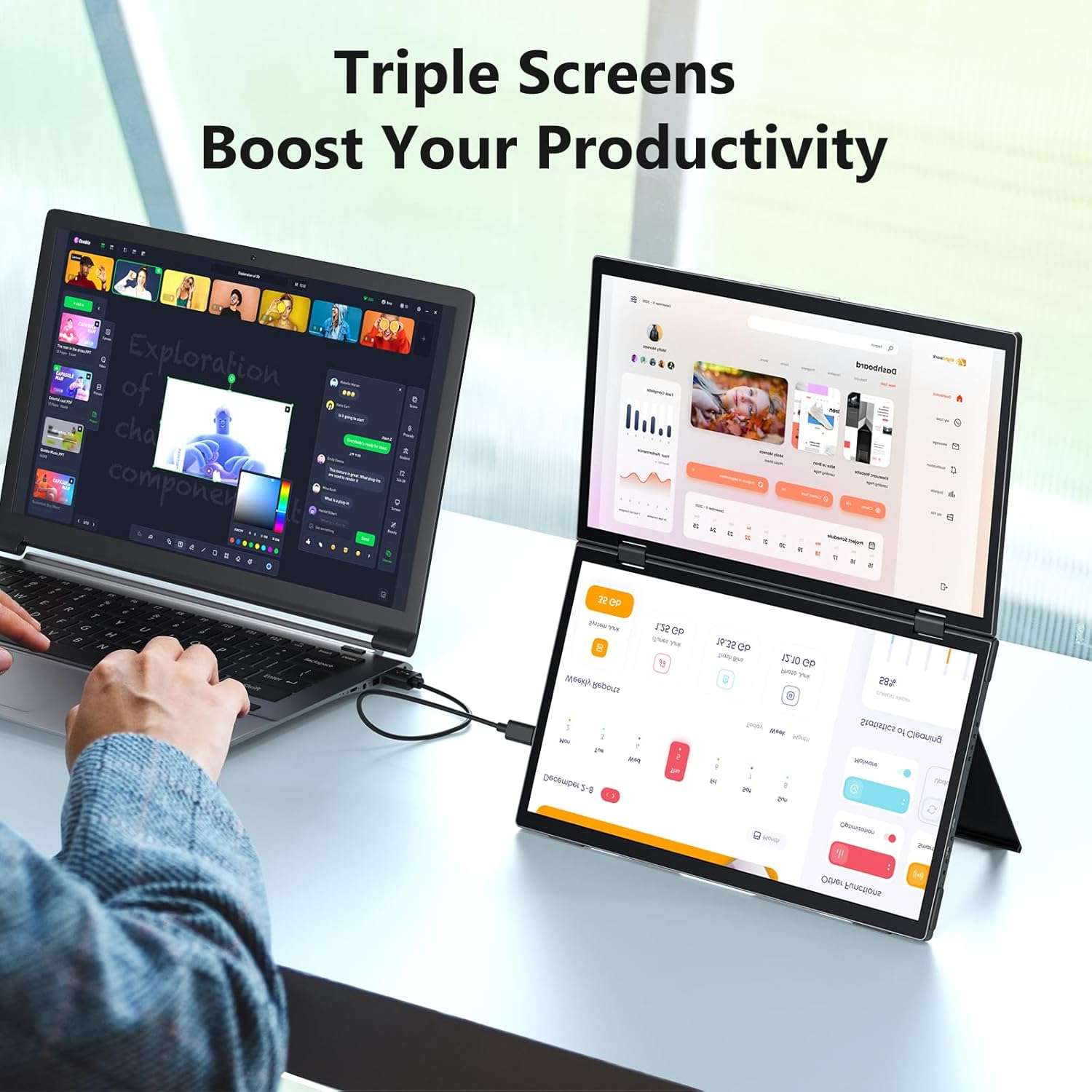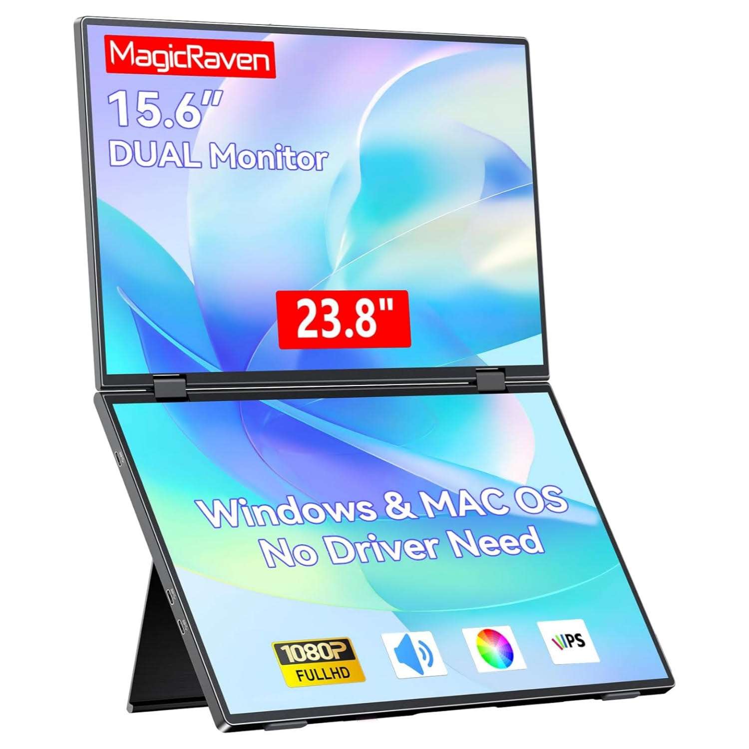 Este extensor de pantalla doble para notebook de la marca MAGICRAVEN es la opcion mas buscada en Chile para quienes necesitan maximizar su productividad Su diseño portatil y plegable incluye dos pantallas de 40 centimetros que equivalen a 15 pulgadas creando una estacion de trabajo completa de tres pantallas en cualquier lugar sin necesidad de instalar controladores gracias a su sistema conectar y usar
