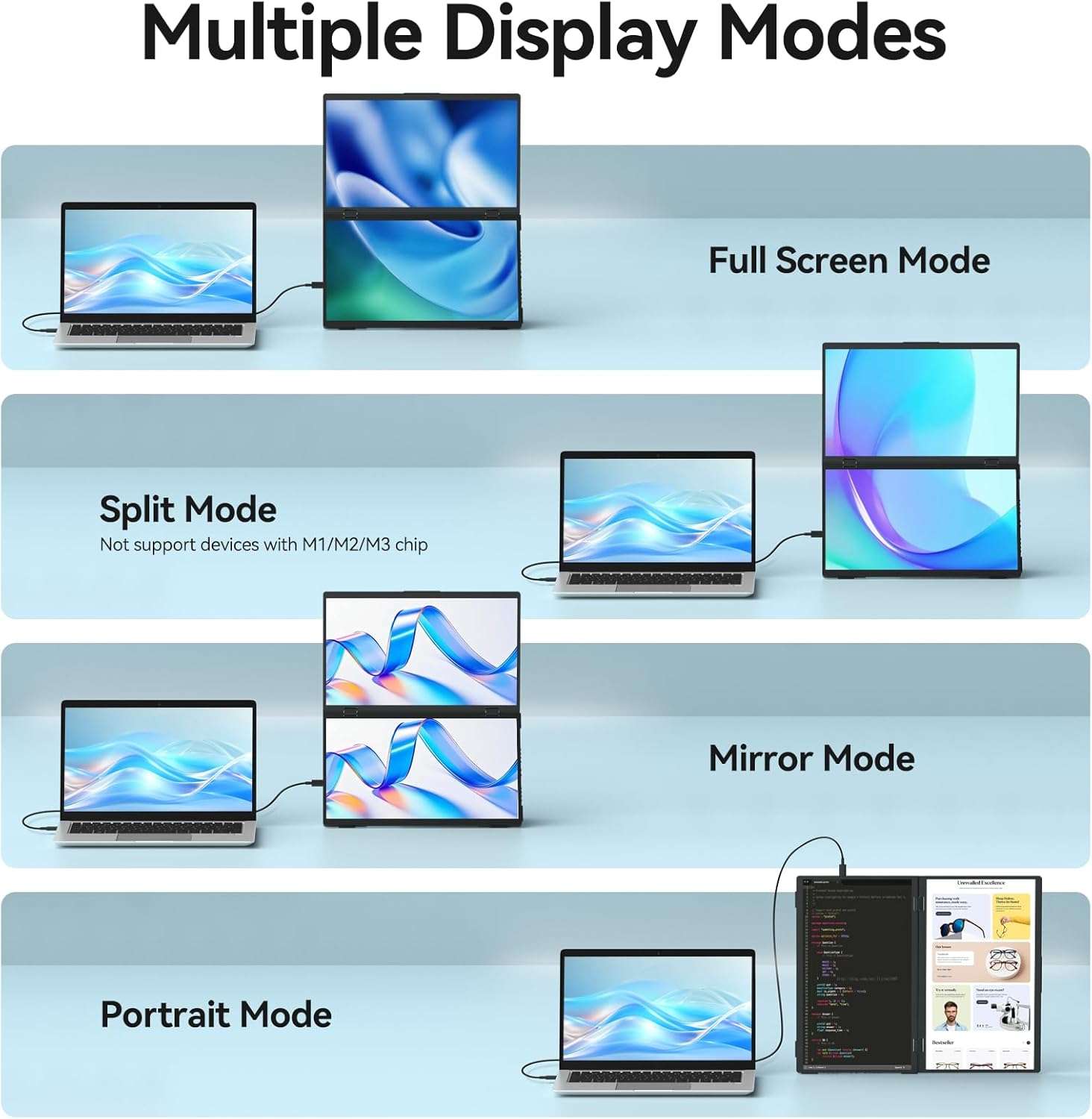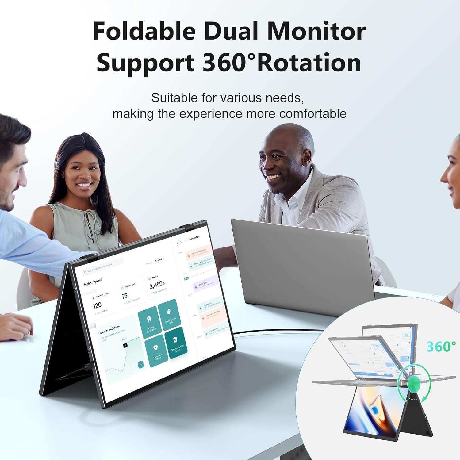 Su estructura de metal es sumamente ligera y se pliega de forma compacta para llevarla en cualquier mochila Destaca por permitir girar la pantalla superior libremente en 360 grados siendo ideal para compartir presentaciones cara a cara con un solo boton Puede utilizar diferentes modos de visualizacion como pantalla extendida modo espejo o division vertical adaptandose a cualquier flujo de trabajo