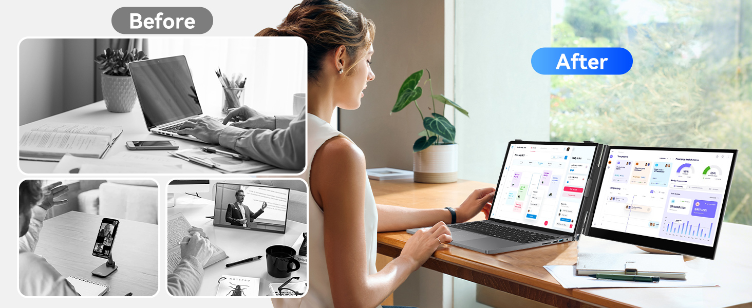 Transforma tu forma de trabajar con el extensor de pantalla para notebook Blackview SCM8. Diseñado para profesionales que necesitan un espacio de trabajo dual en cualquier lugar, este monitor portátil define la verdadera movilidad. A diferencia de otras pantallas pesadas, este modelo integra todo lo necesario para la oficina móvil sin sumar peso extra a tu mochila.