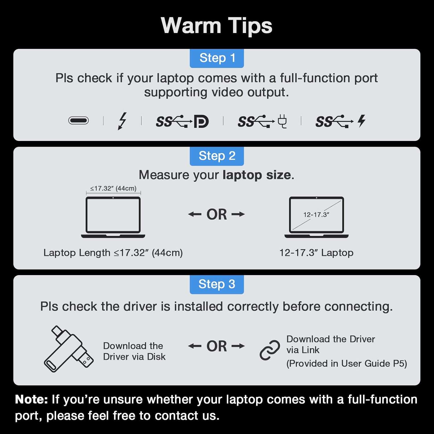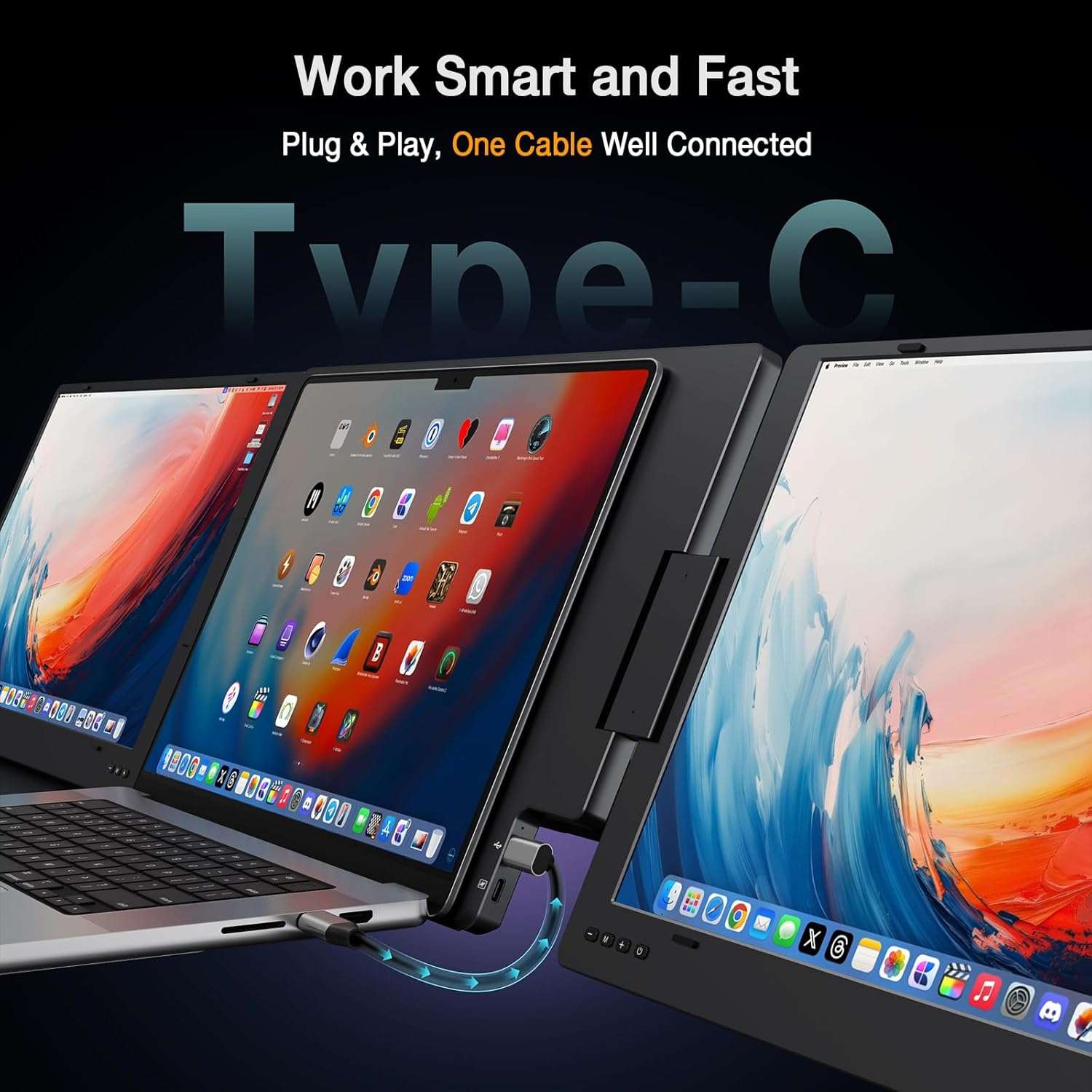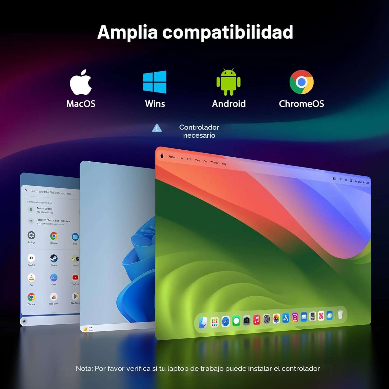 Destaca por su conexion mejorada que utiliza un solo cable usb tipo c para conectar el extensor completo a su notebook eliminando la necesidad de procesos complicados y cables redundantes Es totalmente compatible con sistemas windows mac chrome os android y linux adaptandose perfectamente a equipos portatiles que midan entre 30 y 43 centimetros de tamaño Tenga en consideracion que requiere la descarga previa de controladores para su correcto funcionamiento