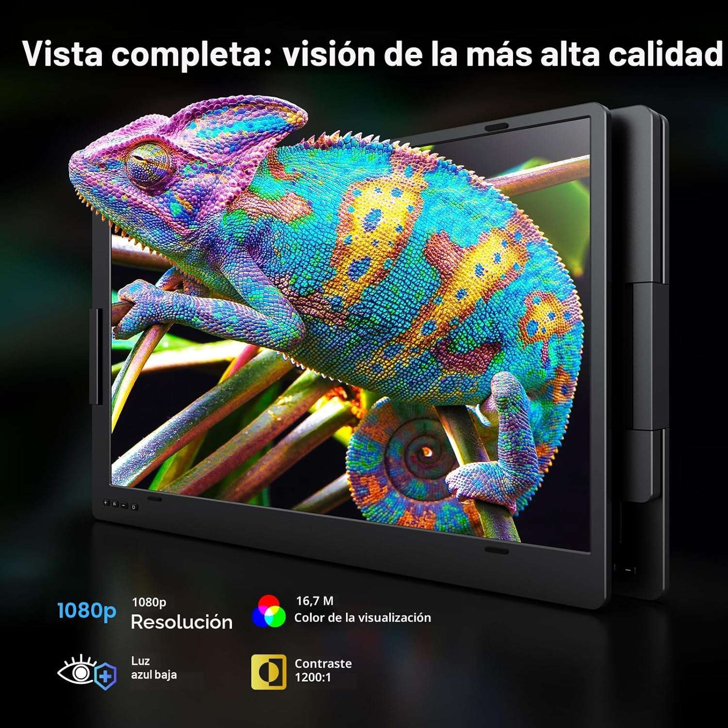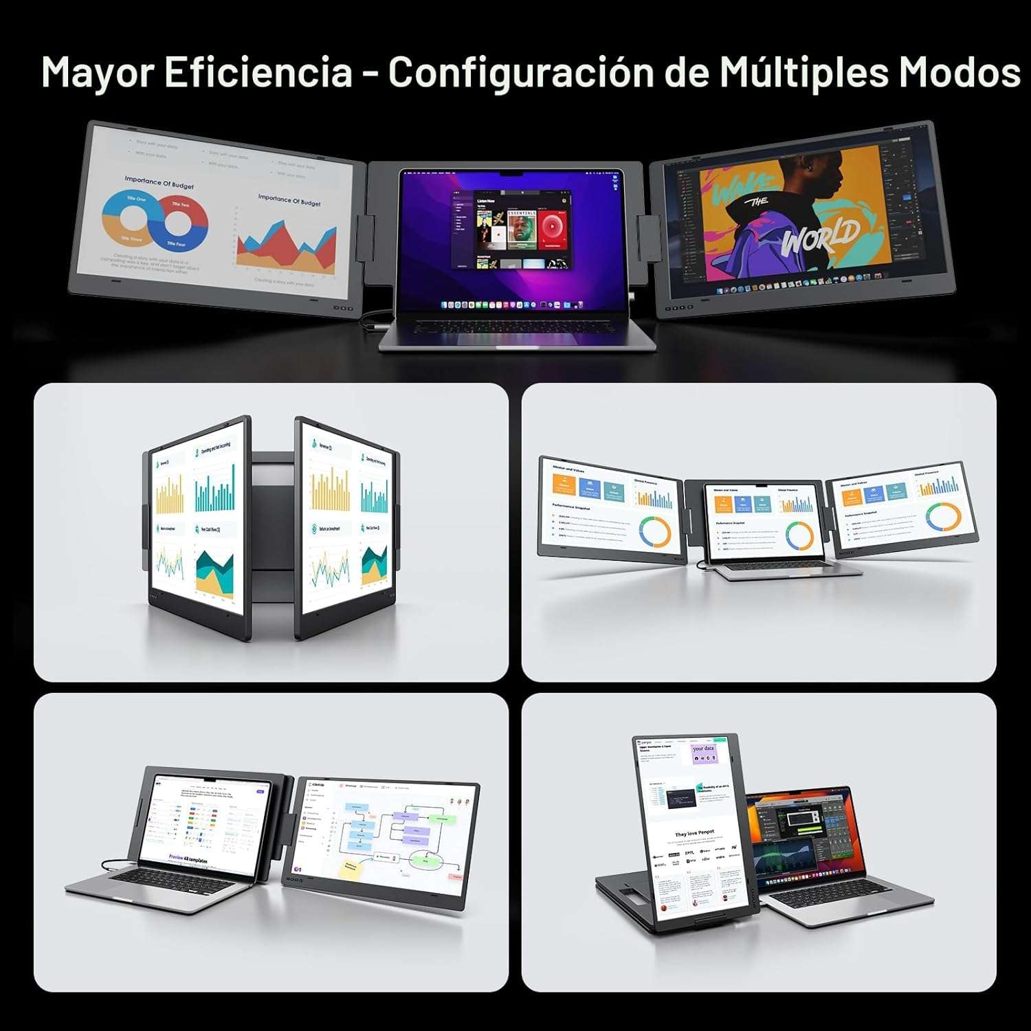 Este extensor de pantalla triple de la marca KYY es la opcion mas innovadora y buscada en Chile para quienes necesitan llevar su productividad al maximo nivel Su diseño profesional incorpora dos pantallas adicionales de 40 centimetros cada una ofreciendo una resolucion FHD de 1080P con paneles IPS que garantizan una reproduccion de color excepcional y una experiencia visual brillante