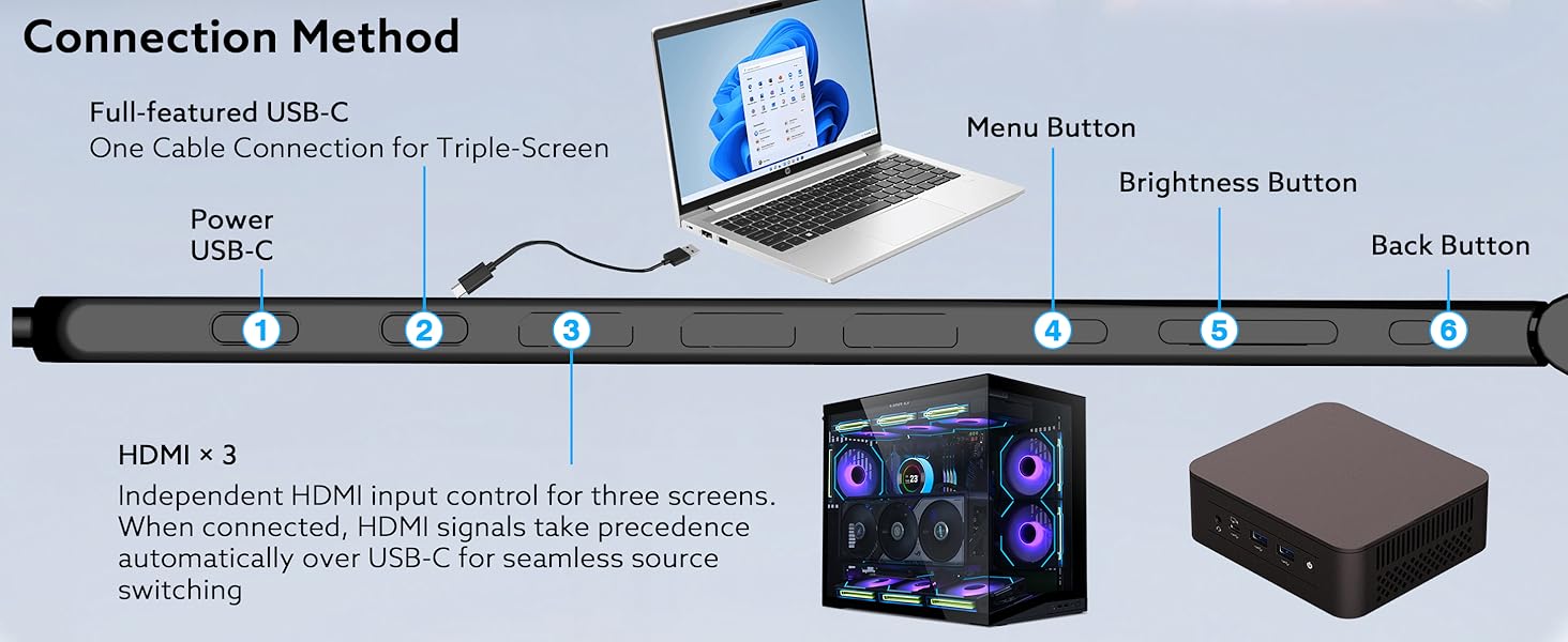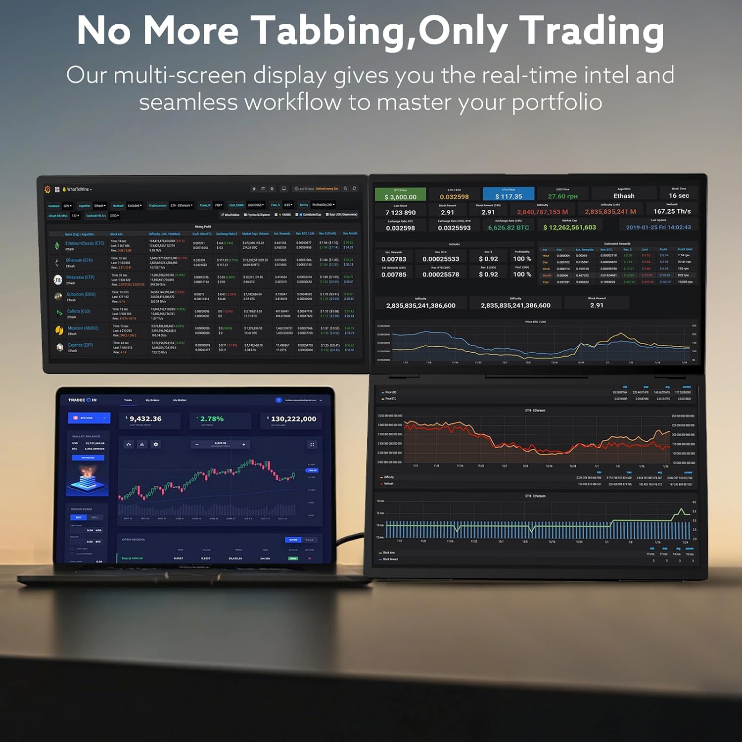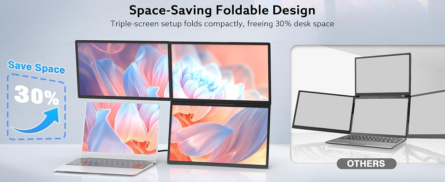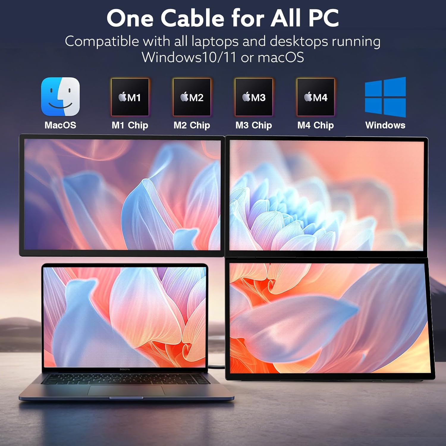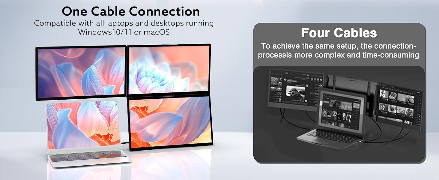 Lleva tu productividad al máximo nivel con este extensor de pantalla triple de 18.5 pulgadas. Este monitor portátil expande la pantalla de tu notebook para crear una estación de trabajo de cuatro pantallas al instante. A diferencia de otras opciones, te permite usar las pantallas de forma sincronizada o completamente independiente, multiplicando tu eficiencia en el teletrabajo o la oficina.