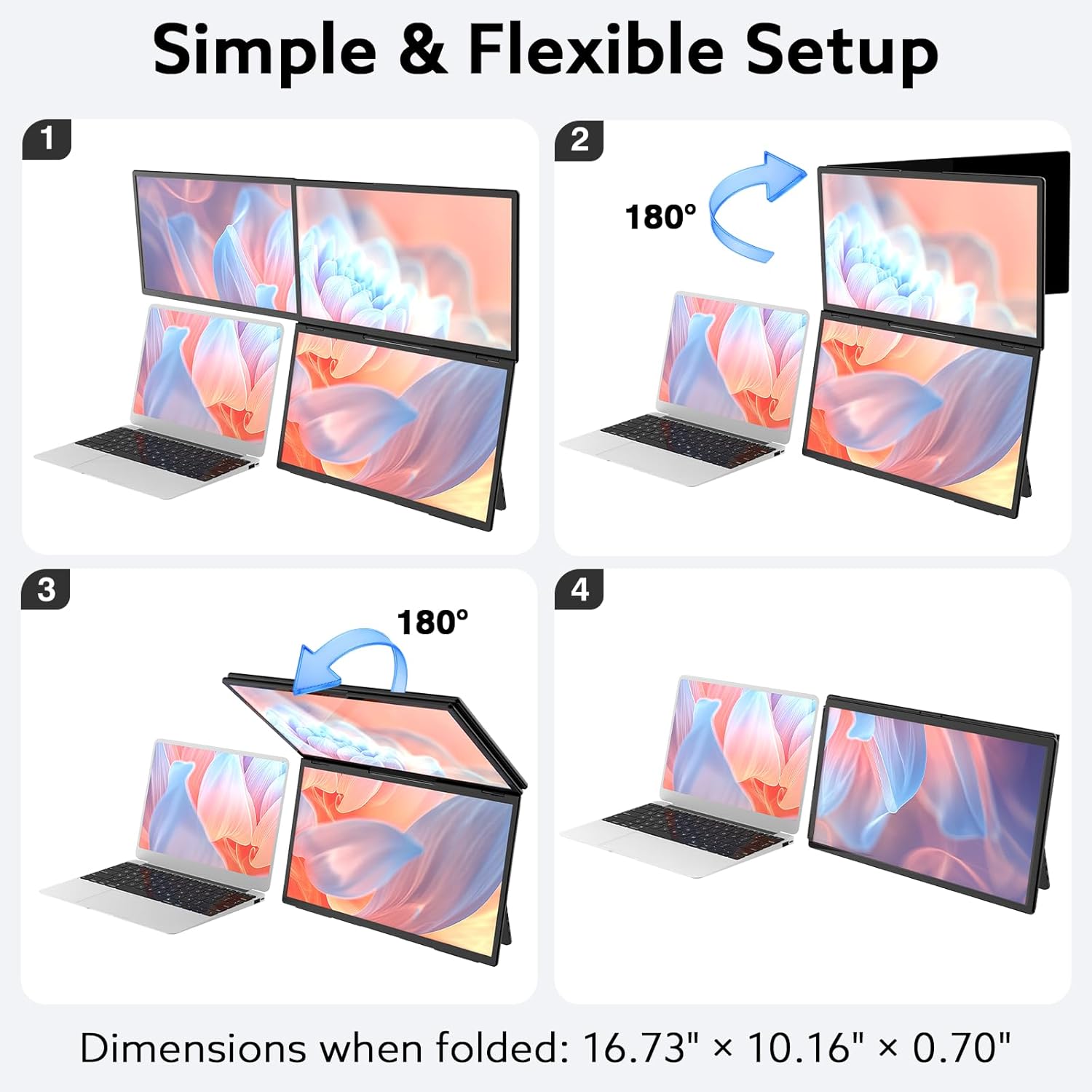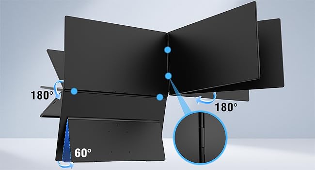 Configuración Flexible y Diseño Plegable Adapta el monitor a tu espacio de trabajo. Cuenta con un soporte ajustable integrado y es compatible con soportes de brazo VESA estándar de 75 por 75 milímetros. Esto te da total libertad para instalarlo como prefieras. Además, cuando terminas de trabajar, se pliega perfectamente al tamaño de una sola pantalla para guardarlo o transportarlo sin esfuerzo.