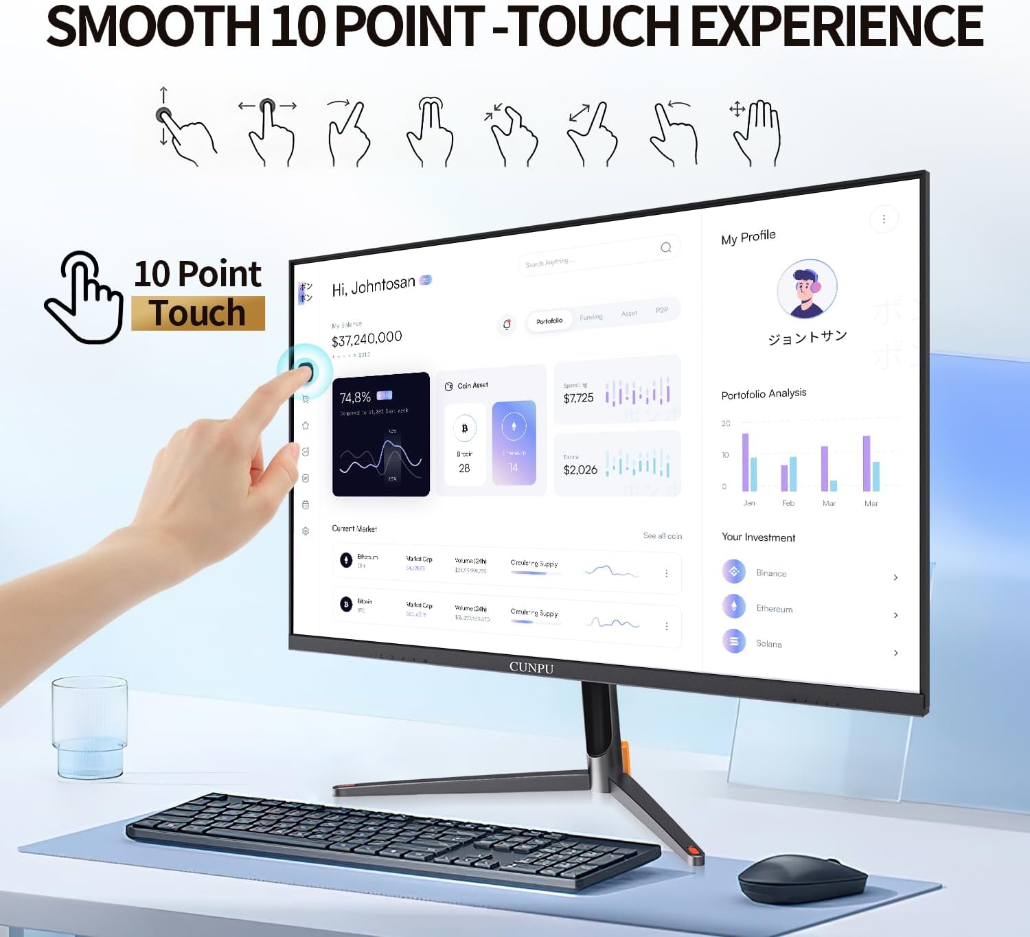 Monitor Tactil 24 Pulgadas 10 Puntos Full HD para PC y Notebook