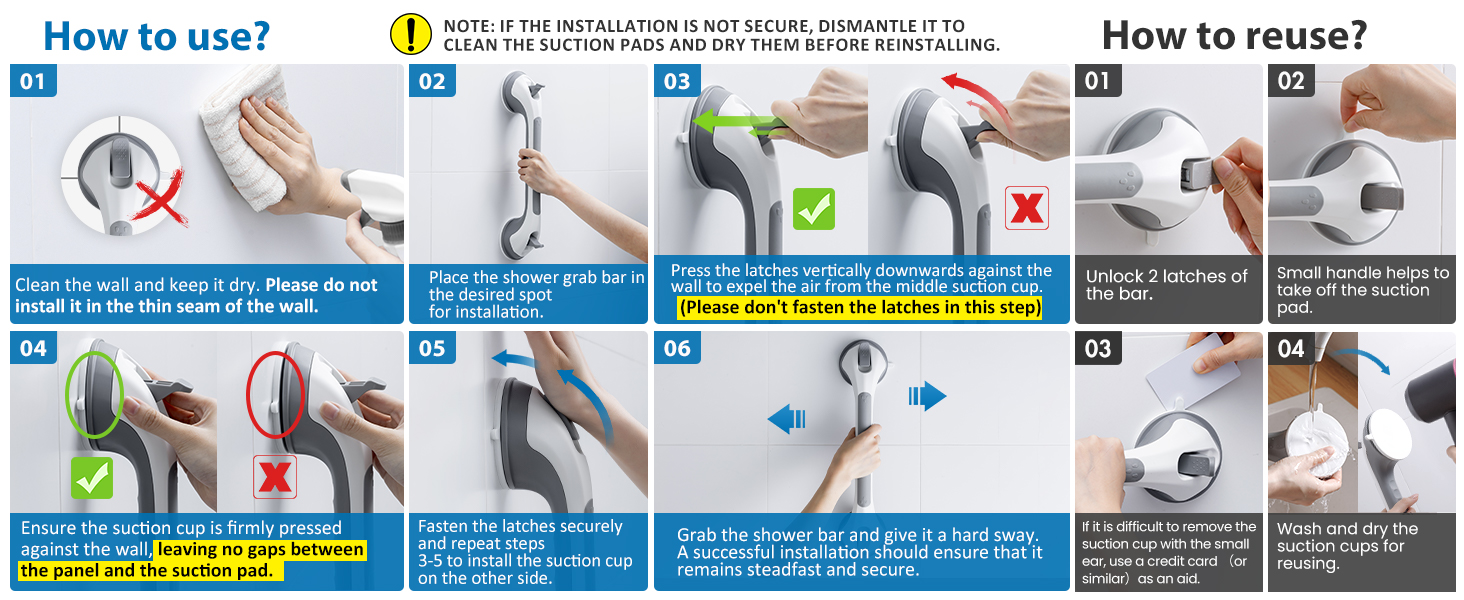 Reutilizable y Portatil: Si te mudas o viajas, simplemente levanta los pestillos para liberar el vacio, lavala con agua y vuelvela a instalar donde quieras.