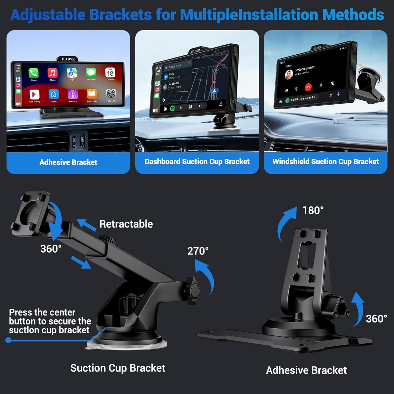 Moderniza tu vehiculo al instante con esta increible pantalla tactil portatil de 26 centimetros Compatible de forma inalambrica con Apple CarPlay y Android Auto te permite usar Waze Google Maps o Spotify directamente con tu voz a traves de Siri o Google Assistant