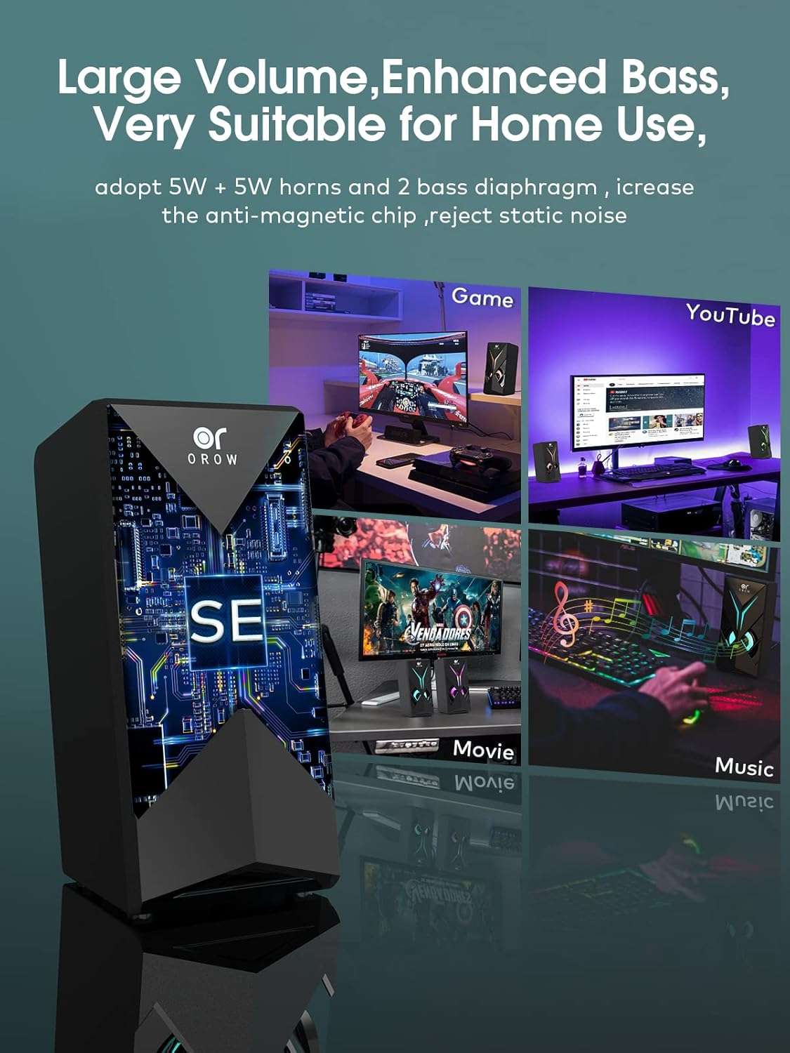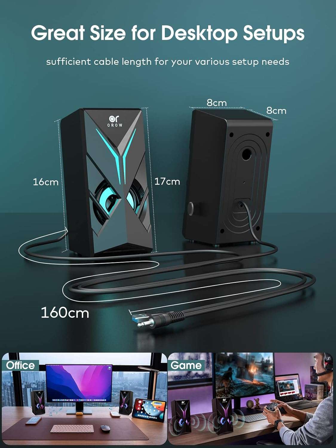 Estos parlantes para computador marca OROW son la opcion mas buscada en Chile para quienes desean mejorar el sonido de su equipo de escritorio o notebook Su diseño moderno incluye iluminacion dinamica rgb que eleva la estetica de su configuracion gamer o espacio de trabajo permitiendo apagar las luces facilmente para un aspecto mas minimalista si lo desea
