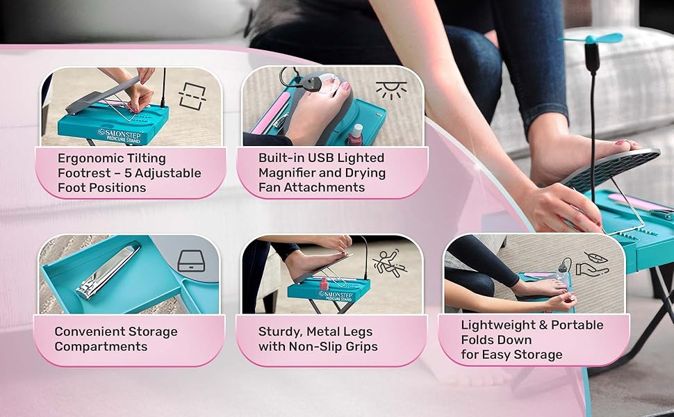 Olvídate de los dolores de espalda y las posturas incómodas al arreglarte las uñas. Salon Step es el innovador sistema de belleza diseñado para brindarte una experiencia de spa en la comodidad de tu hogar. Su diseño ergonómico y estable te permite cuidar tus pies de manera fácil, segura y precisa.