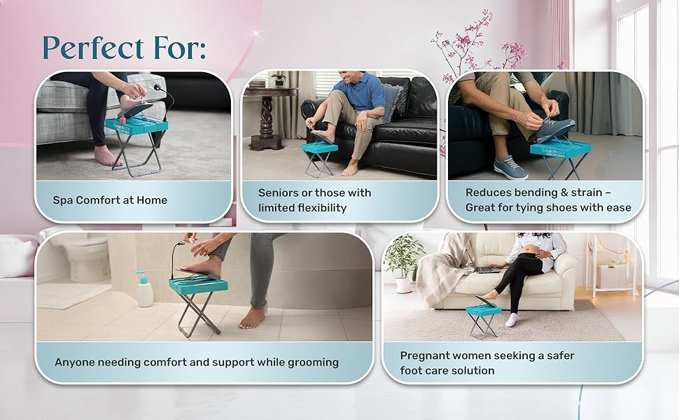 Postura Perfecta y Cómoda Gracias a su diseño en ángulo ajustable, este reposapiés mantiene tus pies en la posición ideal sin que tengas que doblarte o estirarte. Selecciona el ángulo que mejor se adapte a ti y disfruta de una sesión de belleza relajante.