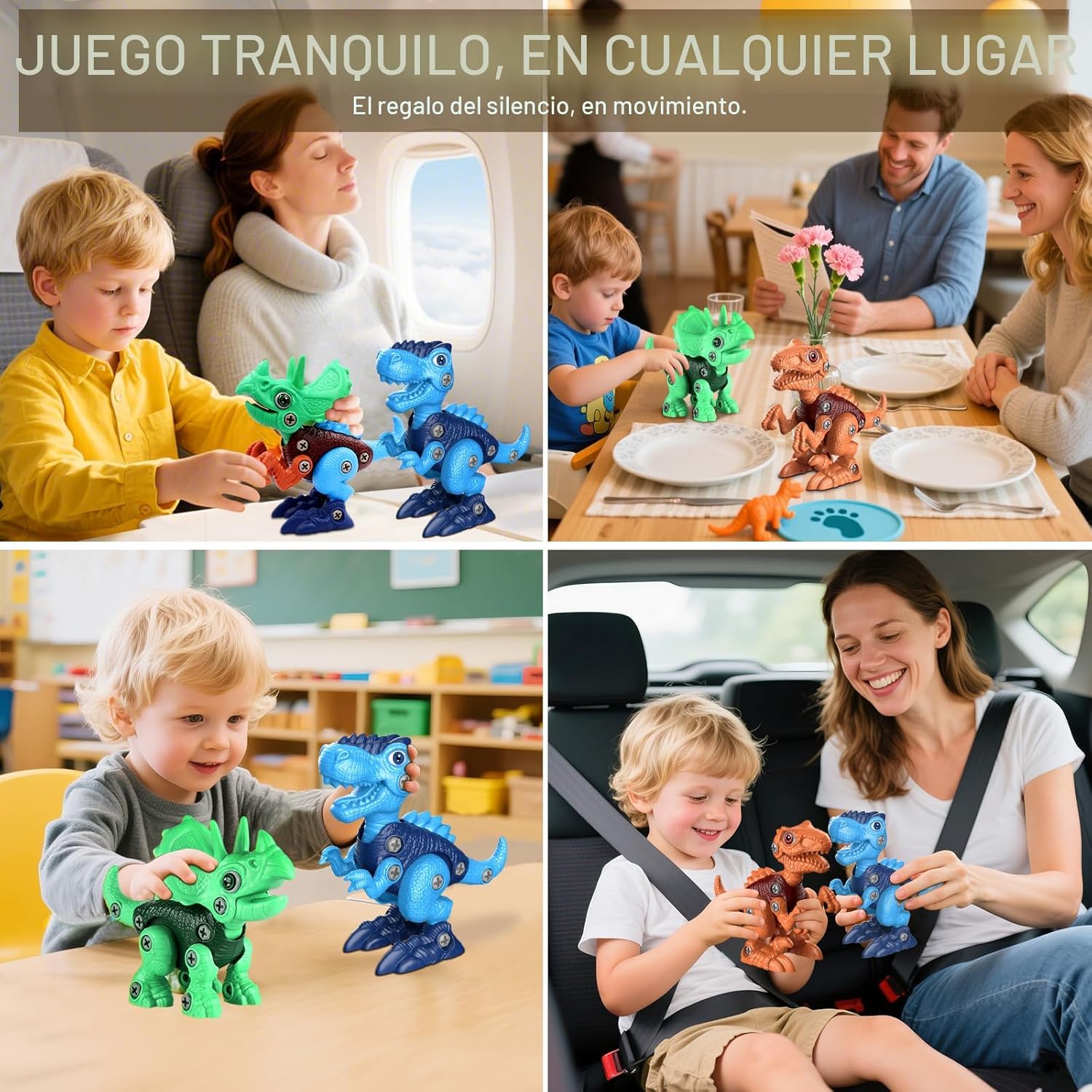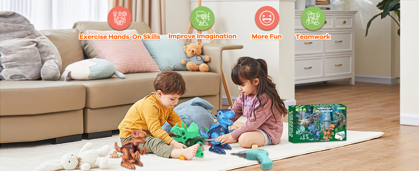 Aleja a tus hijos de las pantallas y pon sus manos a trabajar. Este Set de Dinosaurios Desarmables es el juguete STEM definitivo. Diseñado para manos pequeñas, permite a los niños construir, desarmar y volver a armar sus propios dinosaurios utilizando un taladro electrico de juguete totalmente seguro.