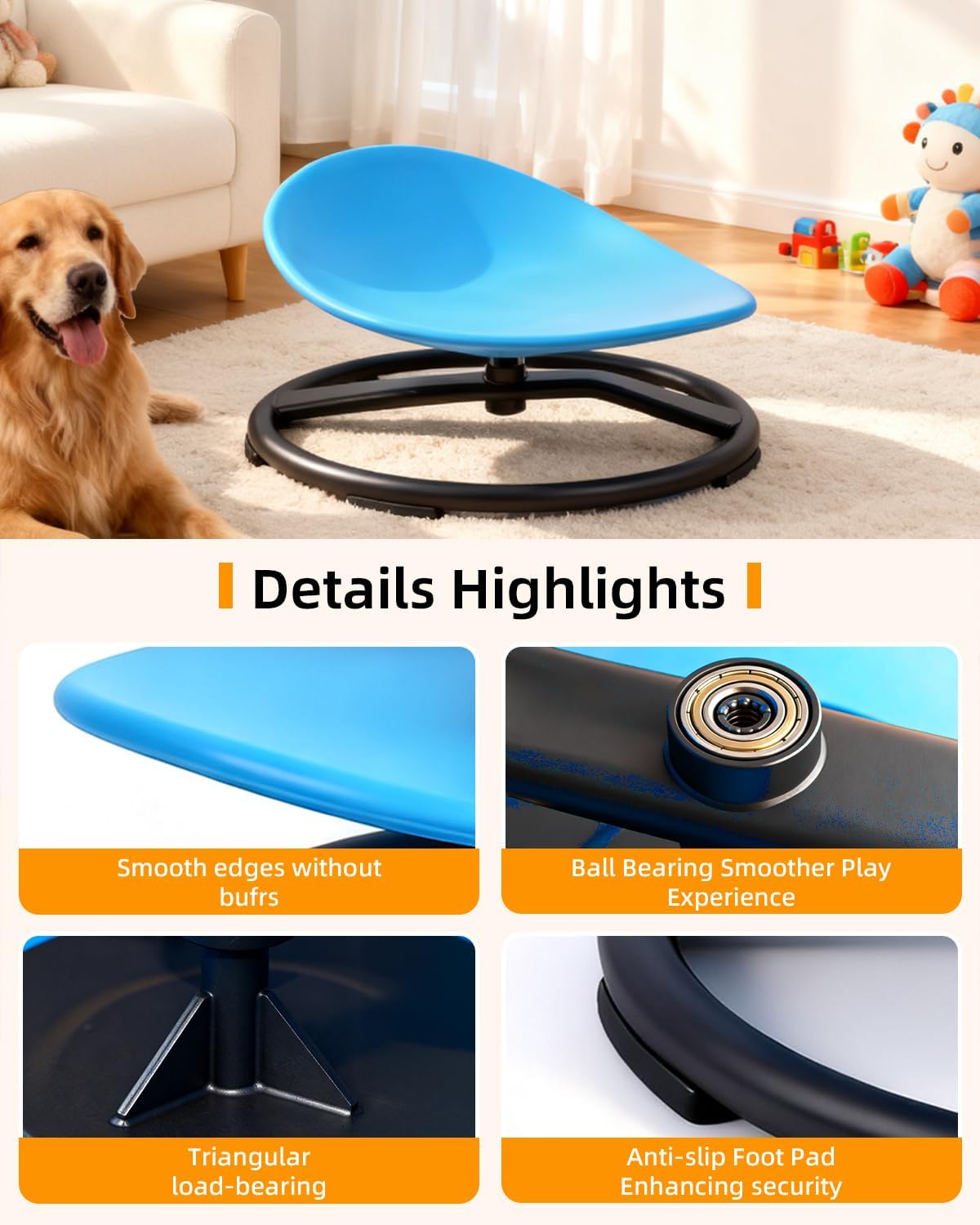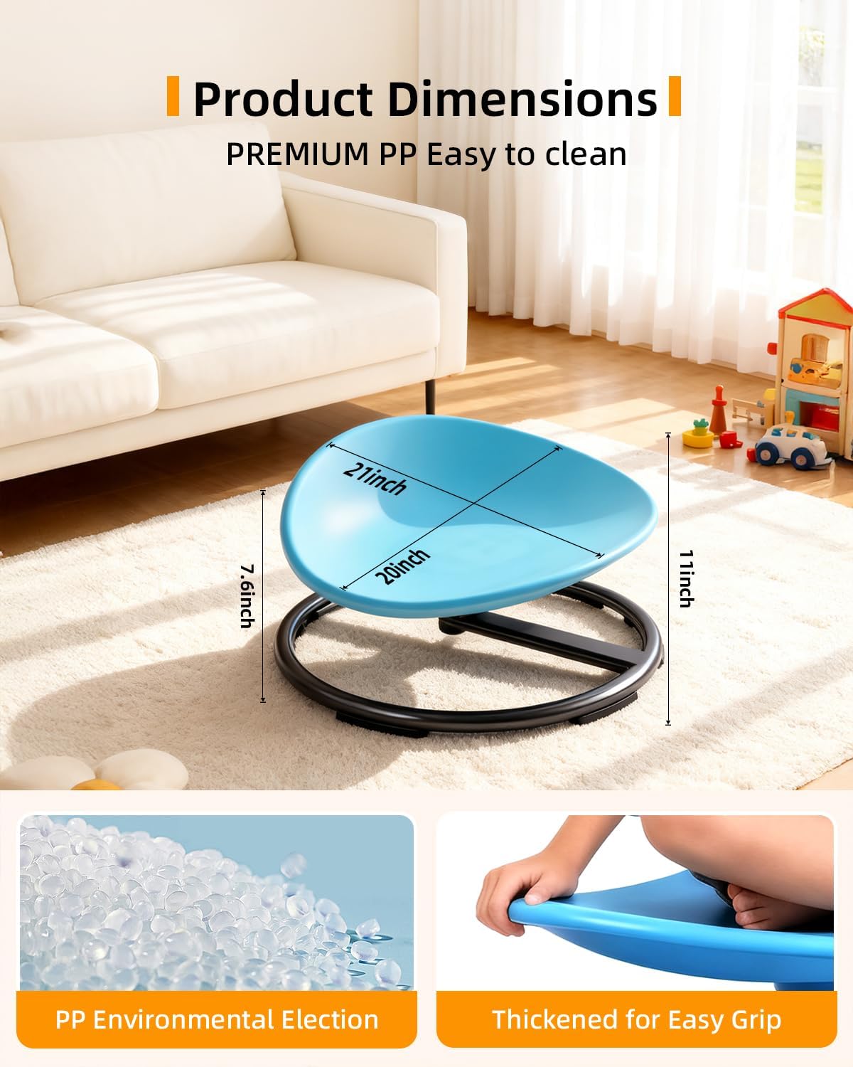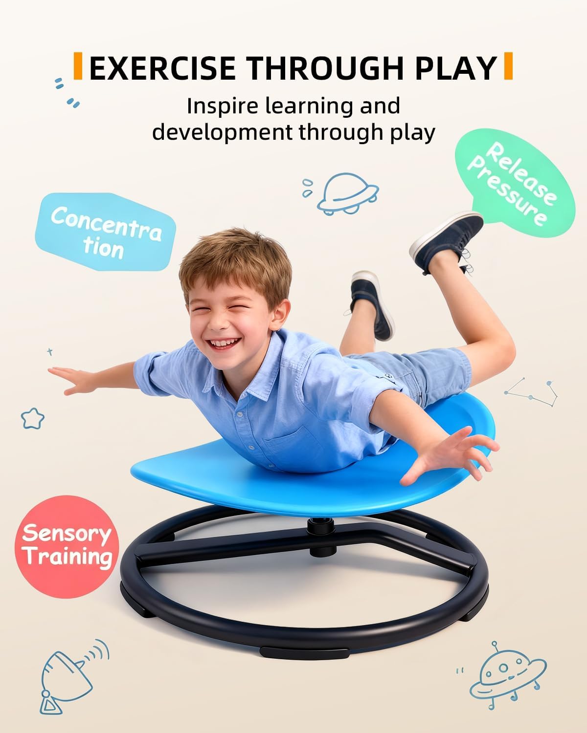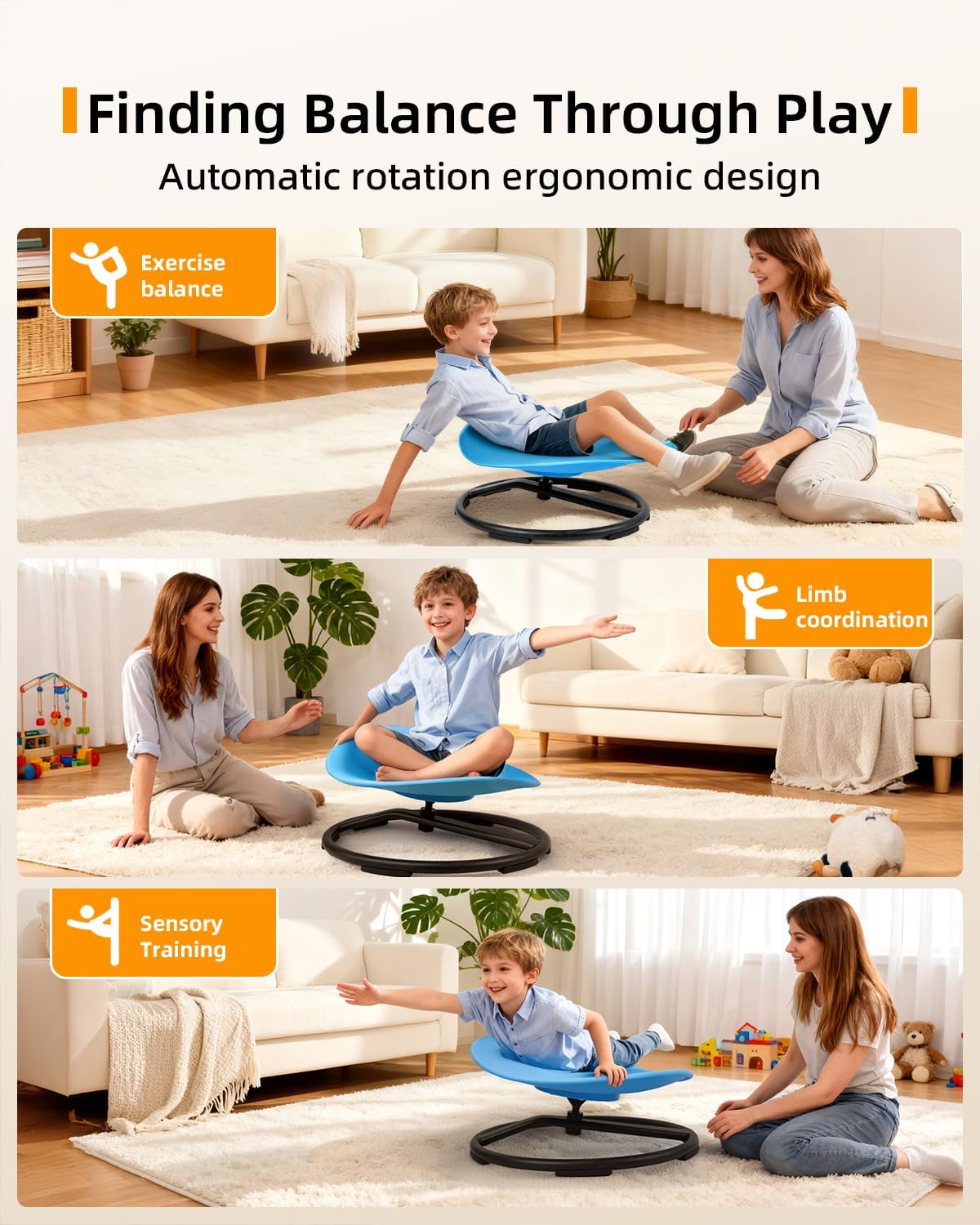 Calma y Enfoque: Para muchos niños, el acto de girar tiene un efecto calmante inmediato, ayudando a reducir la ansiedad y mejorar la concentracion despues del juego.