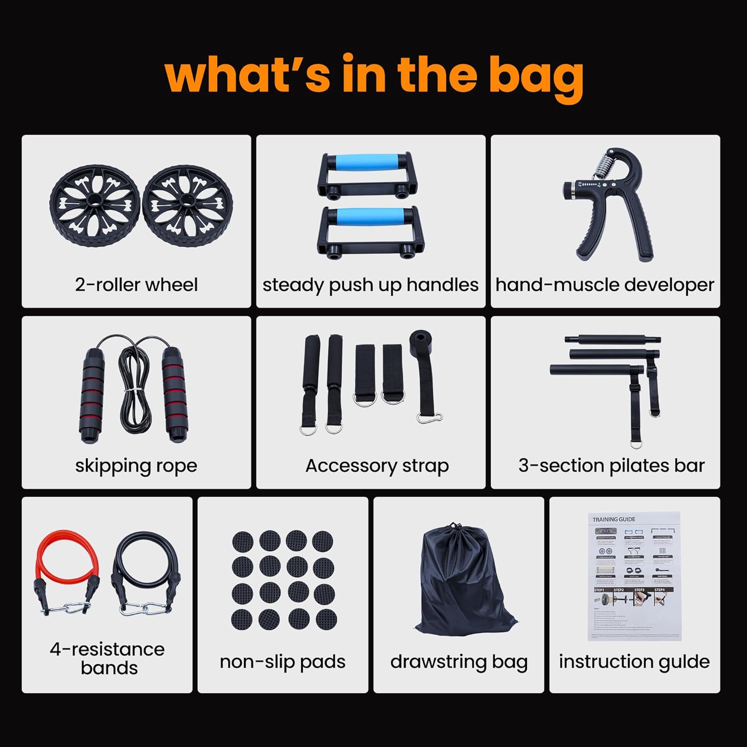 Core de Acero: Fortalece tu abdomen con la Rueda Abdominal (Ab Wheel) incluida, diseñada para un rodamiento suave y estable.