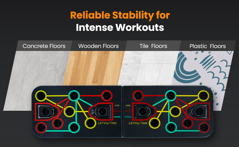 Agarre Antideslizante: Las manillas de goma mejoradas y las almohadillas de la base aseguran que la tabla no se mueva ni un milimetro mientras entrenas, protegiendo tus muñecas y el suelo de tu casa.