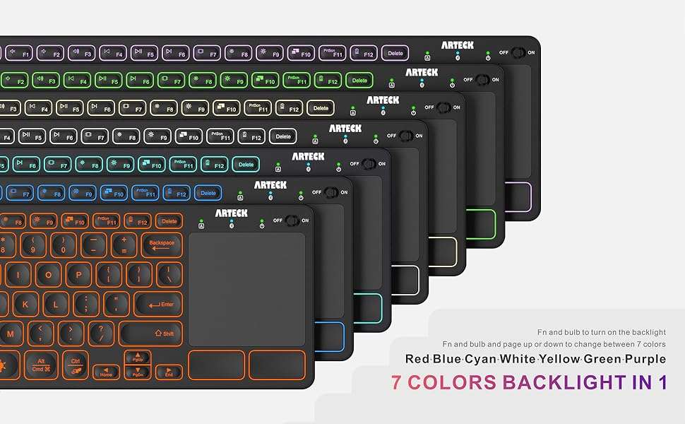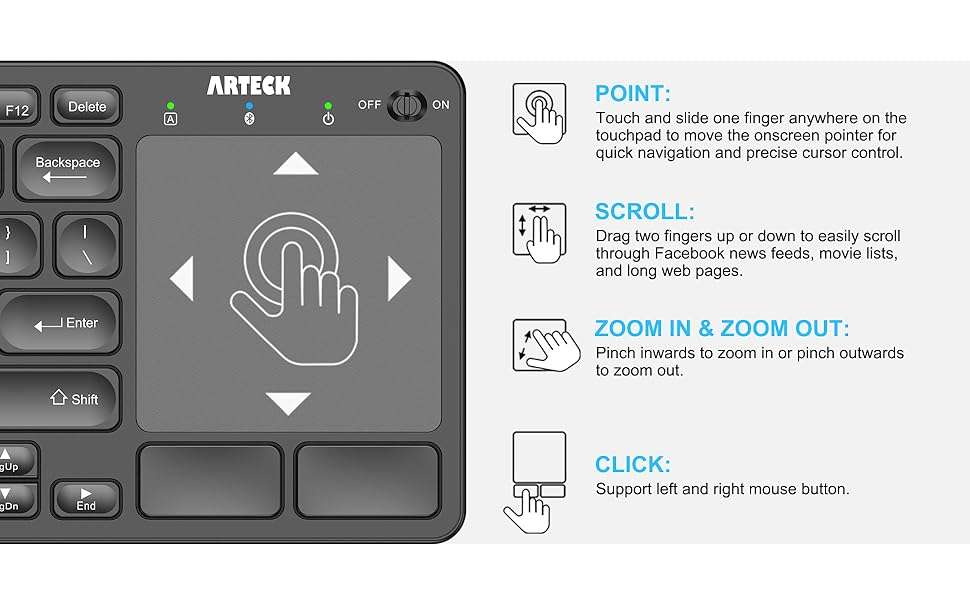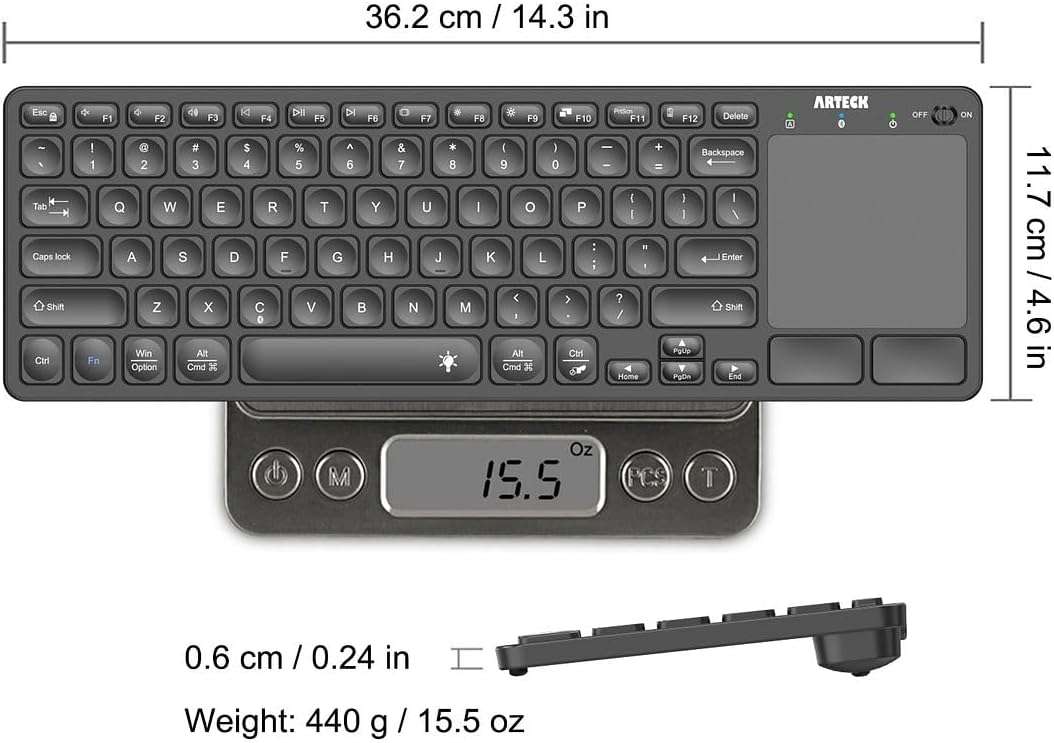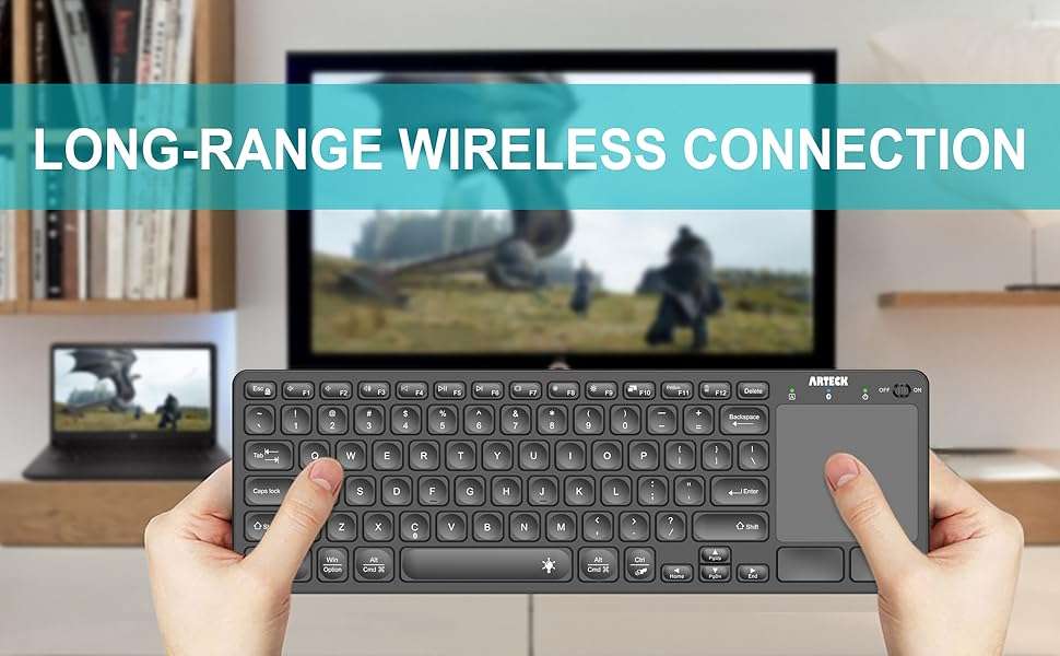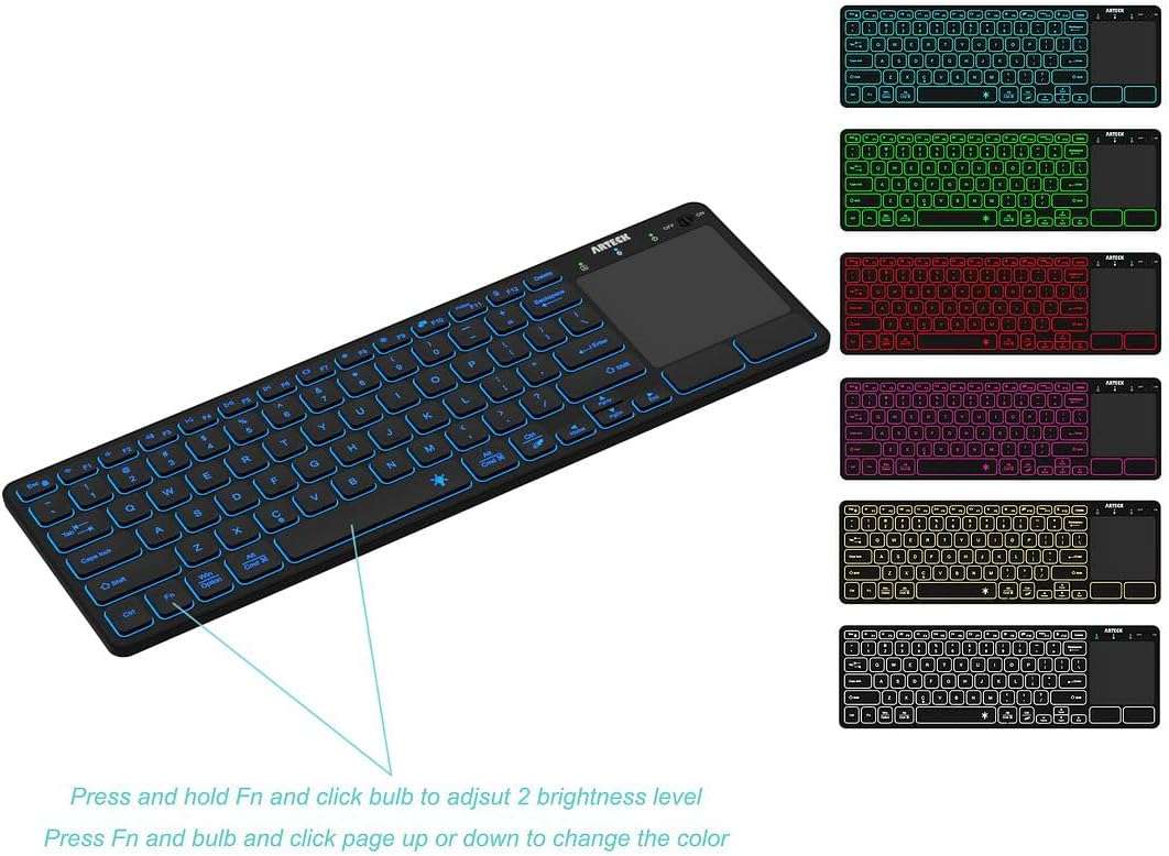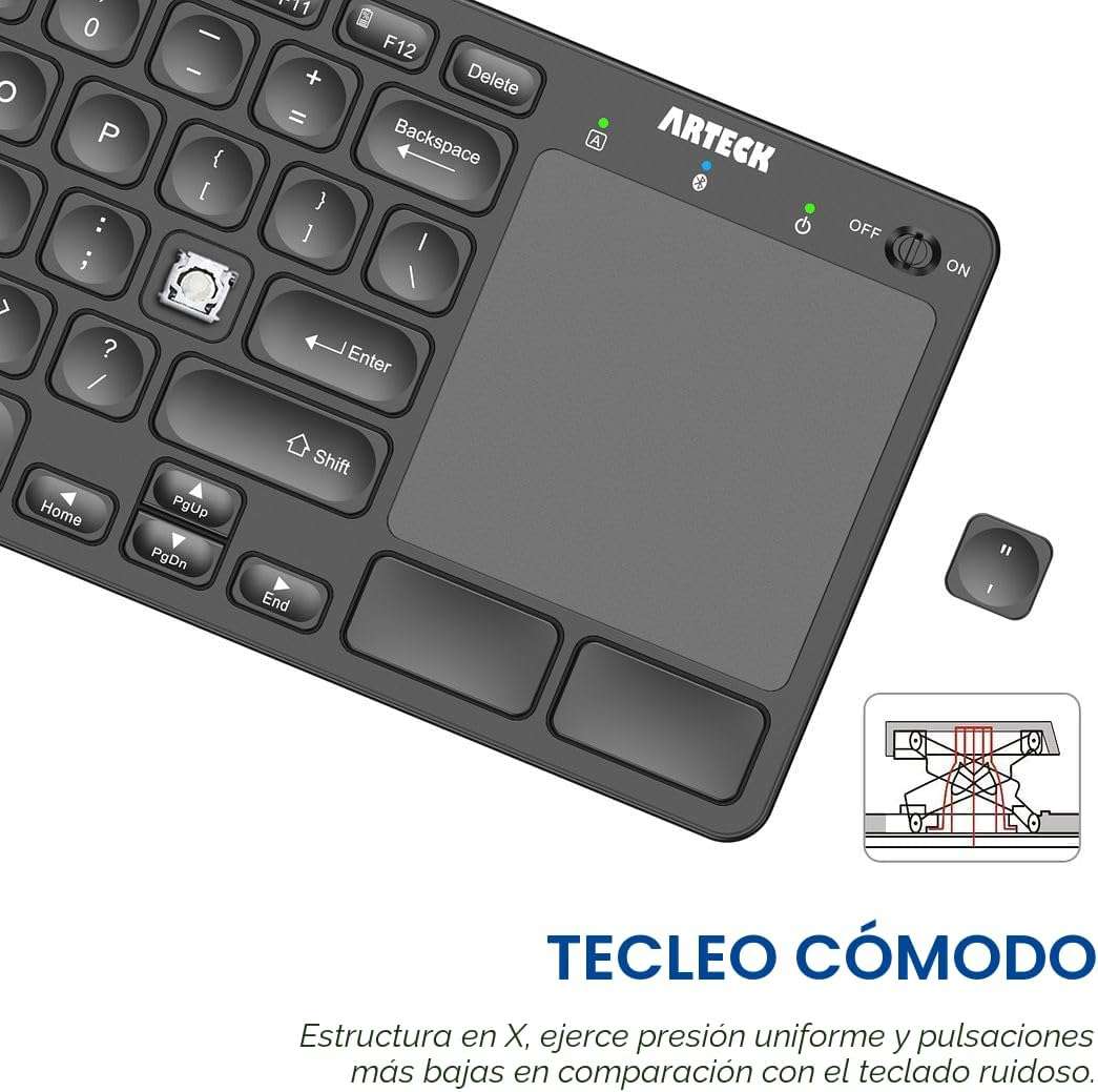 Este teclado inalambrico bluetooth Arteck es la opcion mas versatil y buscada en Chile para quienes desean controlar multiples dispositivos desde la comodidad de su sofa Su diseño innovador cuenta con un panel tactil integrado que le permite disfrutar de un control facil y rapido de su televisor inteligente o computador conectado sin necesidad de utilizar un raton adicional