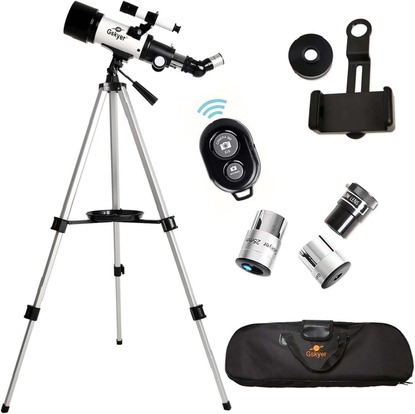 Para una experiencia moderna e interactiva este telescopio refractor incorpora un adaptador para telefonos inteligentes y un control remoto inalambrico Esto le permite observar la naturaleza y el espacio facilmente a traves de la pantalla de su celular capturando imagenes celestes increibles de forma estable para compartir con su familia y amigos